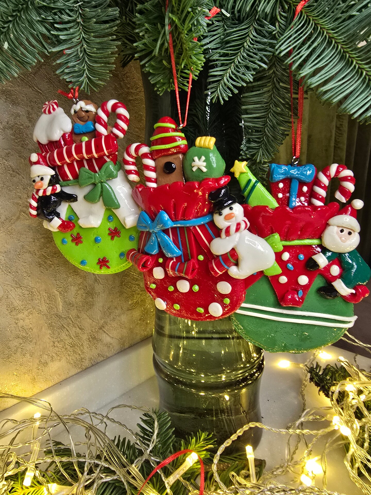Christmas Ornament - Glossy Gingerbread Gift Bag with Snowman. Wizardi Festive Decoration F07-N2-11-AA440A