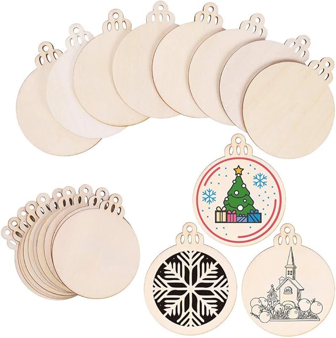 Christmas Ornaments Unfinished Predrilled Wood Slices Circles for Crafts Round Centerpieces Discs Holiday Hanging Decorations