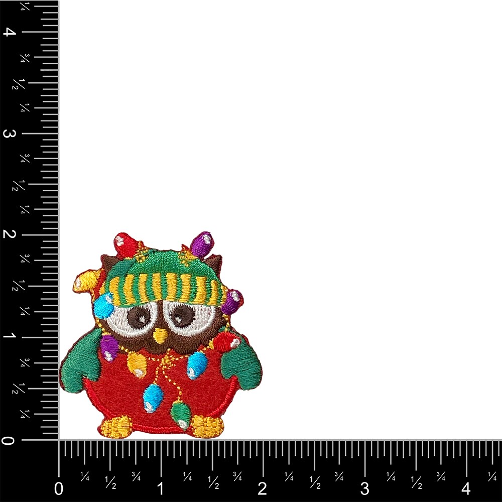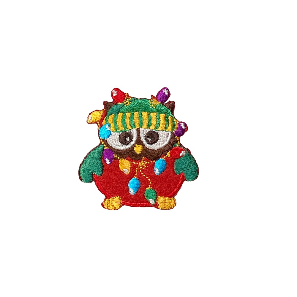 Christmas Owl, Covered in Lights, Embroidered, Iron on Patch