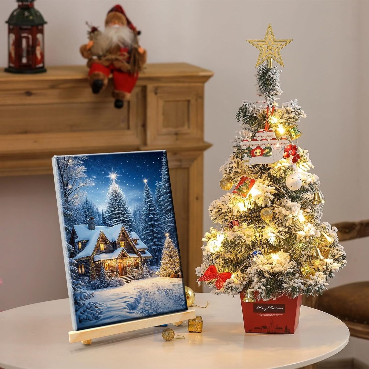 Christmas Paint by Numbers Kit for Adults with Frame, Winter House Paint by Number with Easel(8x12 Inch)