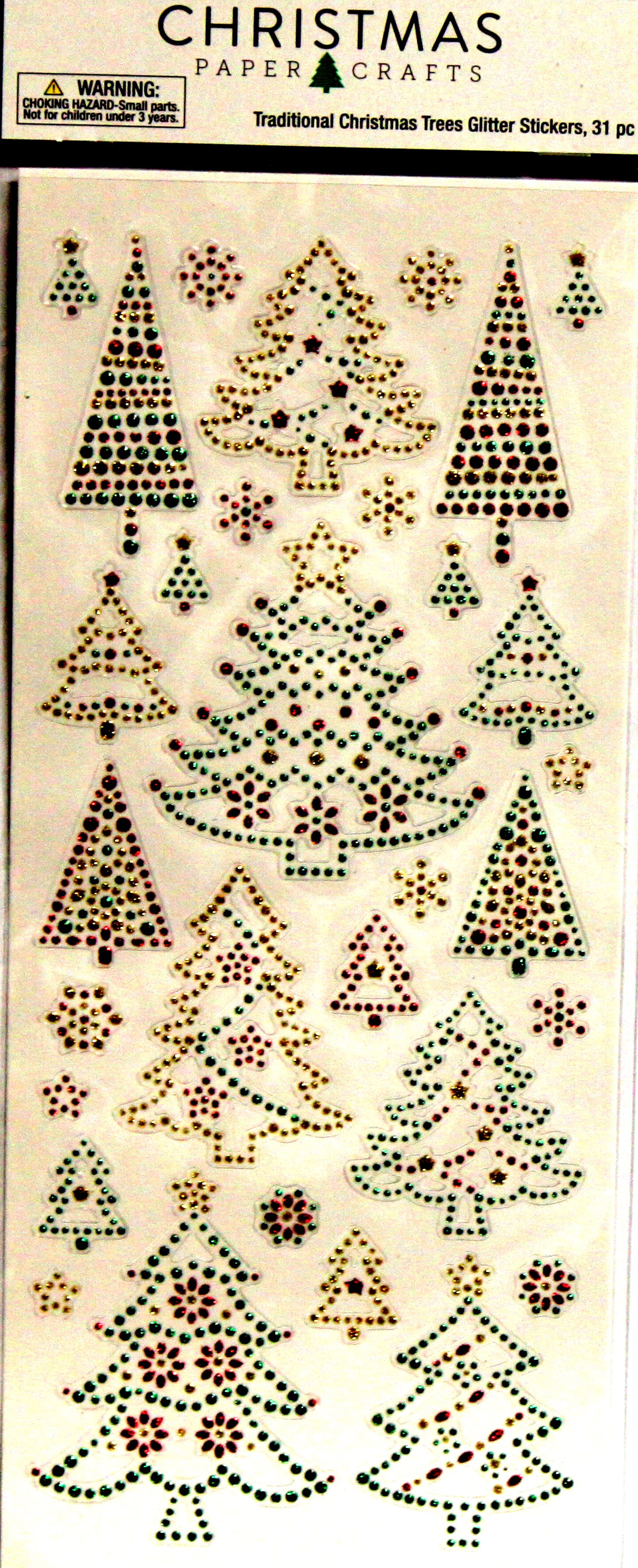 Christmas Paper Crafts Traditional Christmas Trees Clear & Glitter Stickers