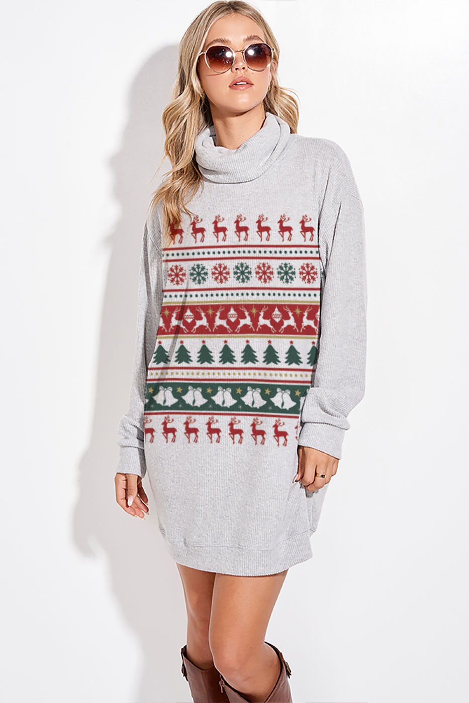 Christmas Pattern Print Turtle Neck Tunic Dress