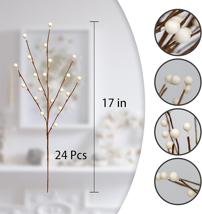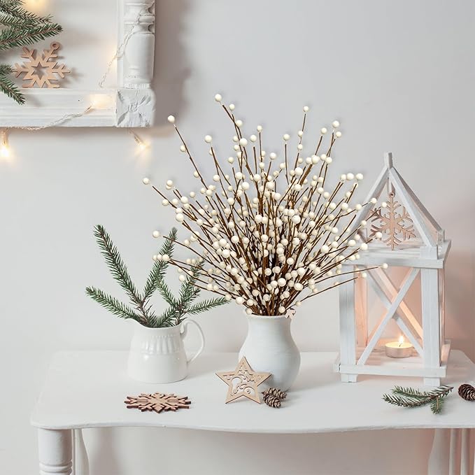 Christmas Picks 17 Inch White Berry Stems with White Holly Berries for Xmas Winter Holidays Vase Filler Floral Arrangement Centerpieces