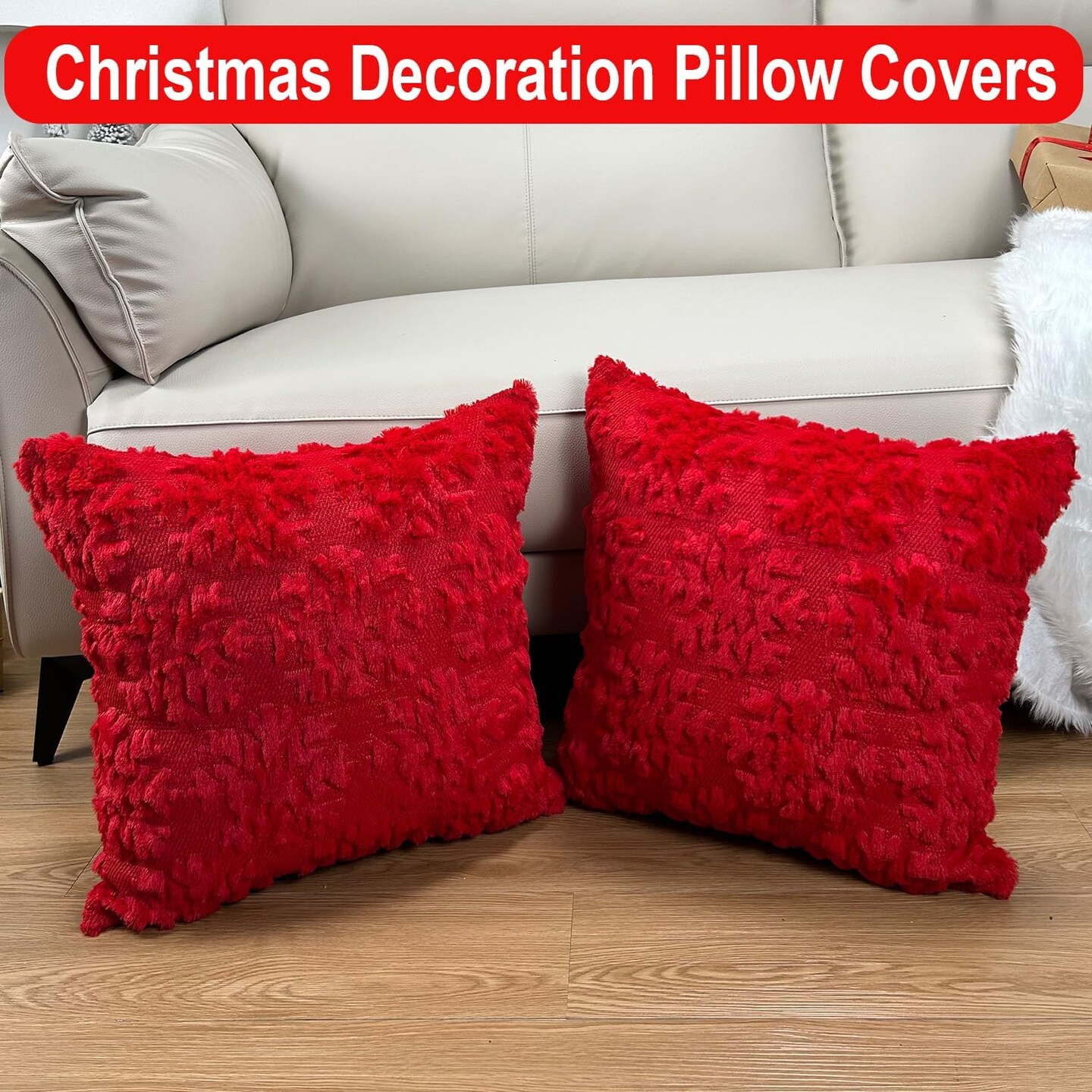 Christmas Pillow Covers 18'' x 18'' Set of 2, Soft Faux Rabbit Fur 3D Embroidery Snowflakes Throw Pillow Covers For Holiday Christmas Decor Sofa, Couch, Party, Invisible Zipper, Skin-Friendly
