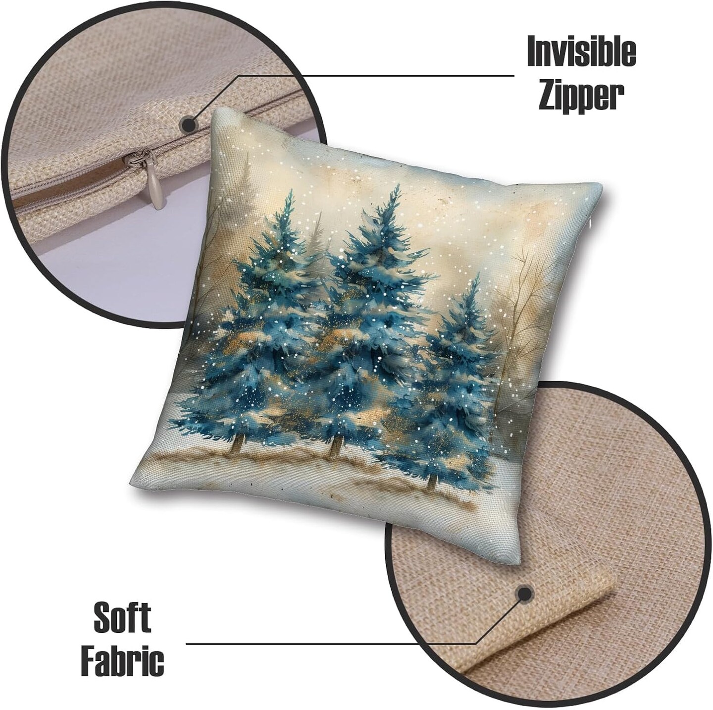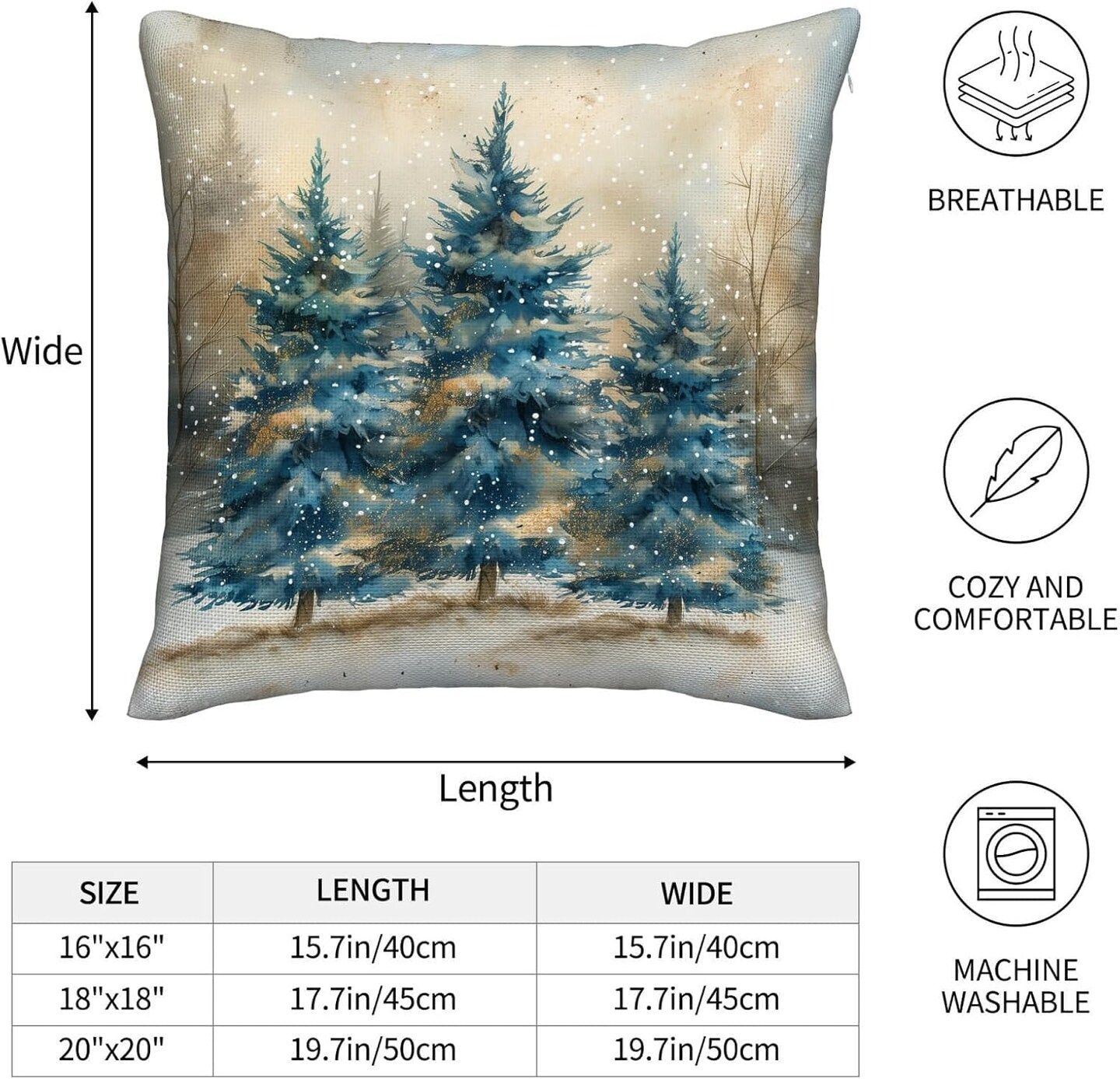 Christmas Pillow Covers 18x18 Inch Set of 2 Decorative Throw Pillows Winter Watercolor Blue Green Tree Soft Christmas Pillow Case for Home Sofa Bedroom Livingroom Decor