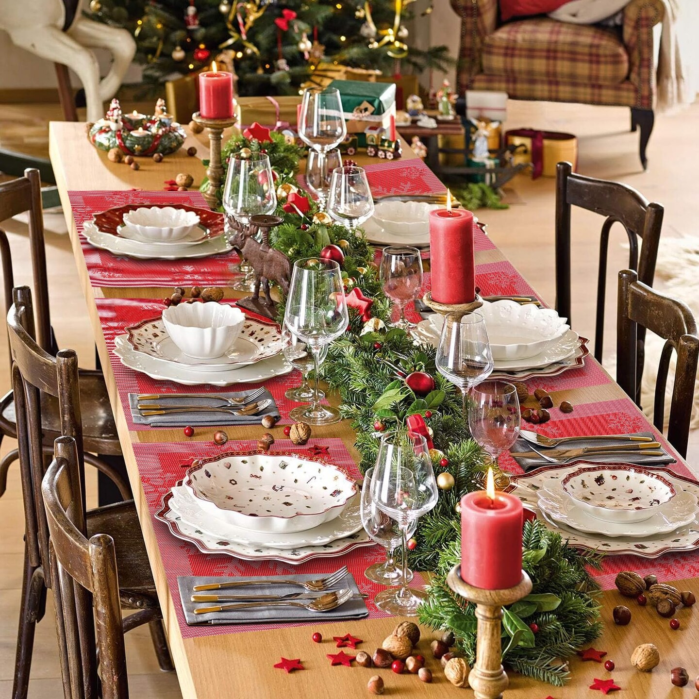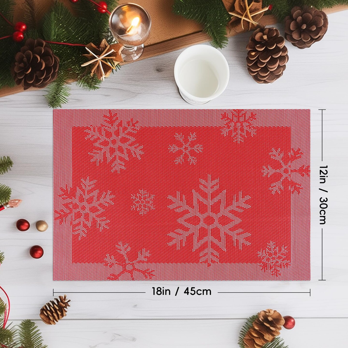 Christmas Placemats Set of 6, Washable Christmas Place Mats for Kitchen Dining Table, Indoor/Outdoor Woven Vinyl Christmas Table Mats, Non-Slip Heat Resistant Holiday Placemats Easy to Clean