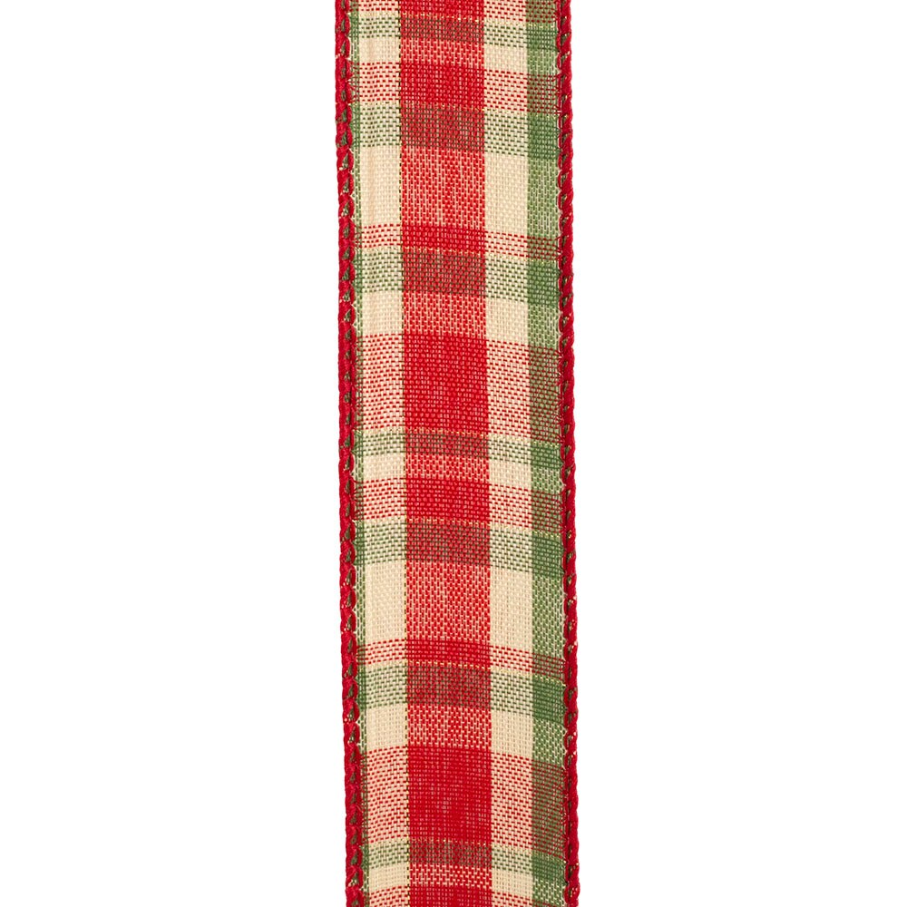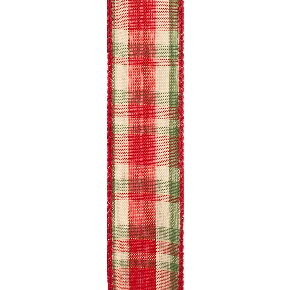 Christmas Plaid Wired Edge Ribbon --- 1 ½ inch x 10 yards --- Red / Green