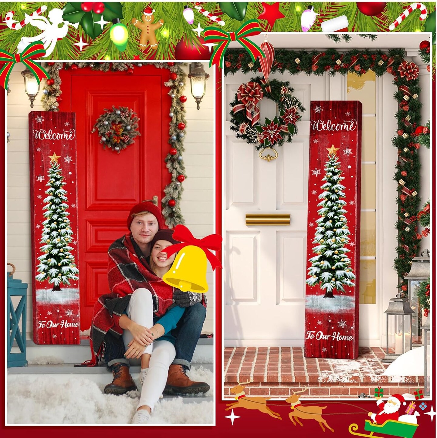 Christmas Porch Sign 47'' Large Merry Christmas Home Wood Decor Outdoor(Red)47"L x 7.8"W