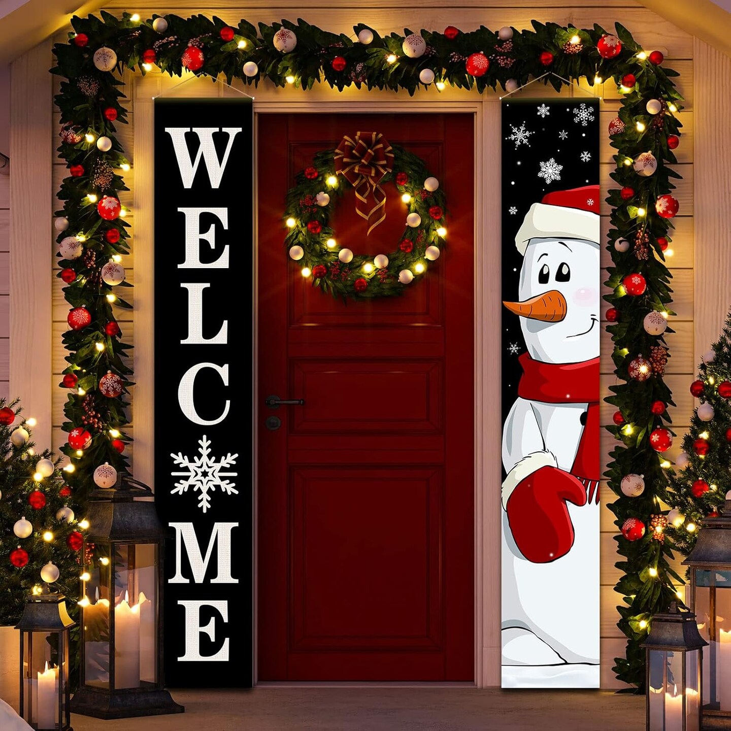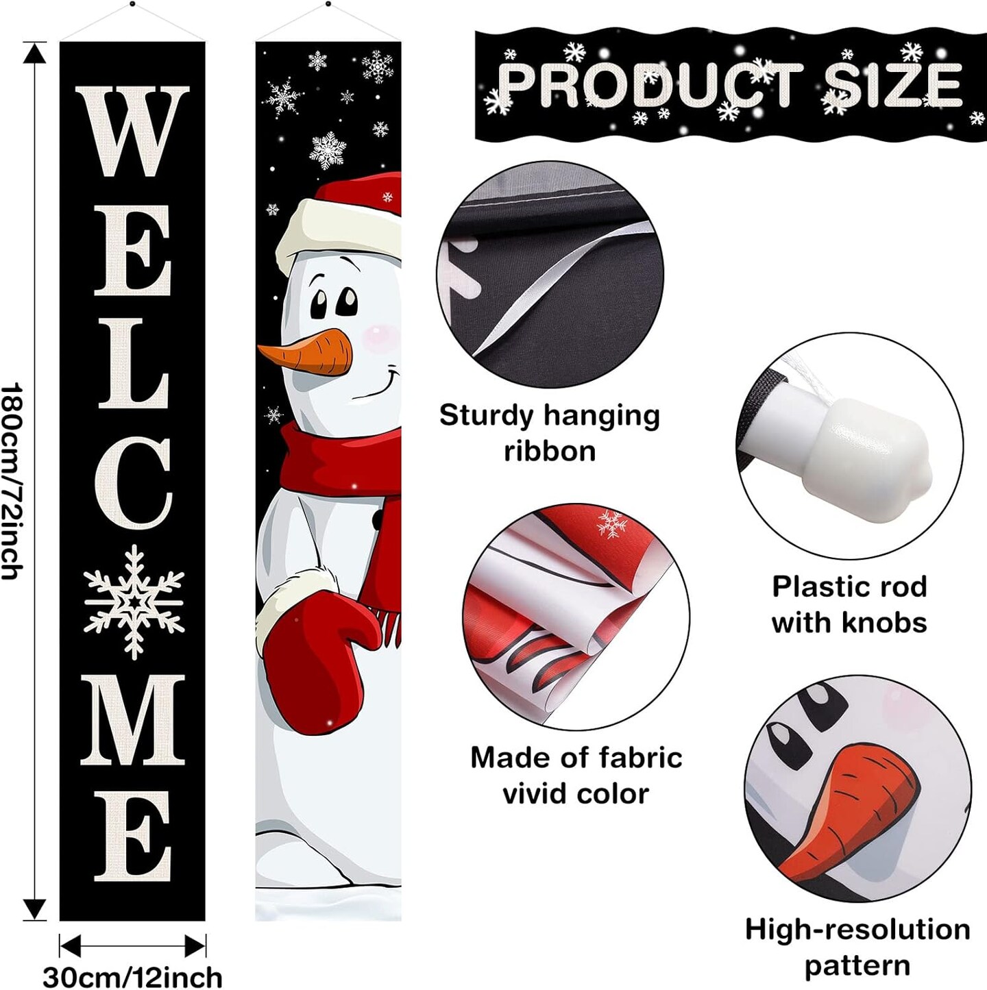 Christmas Porch Sign Banner Decoration - 71"L x 12"W (Snowman)