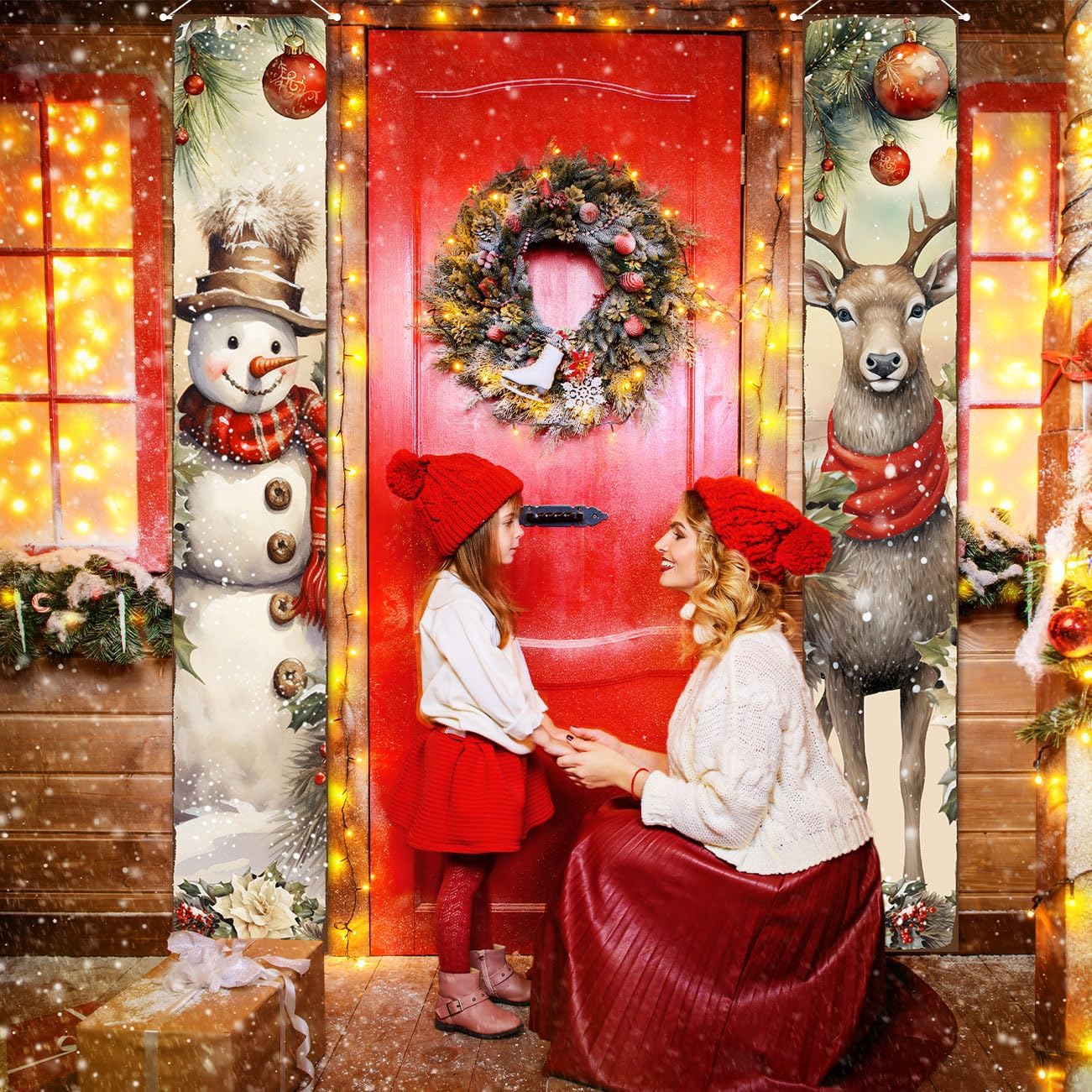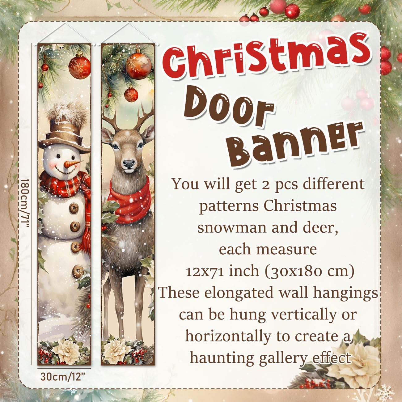 Christmas Porch Sign Banner - Snowman & Deer Decoration - 71"L x 12"W
