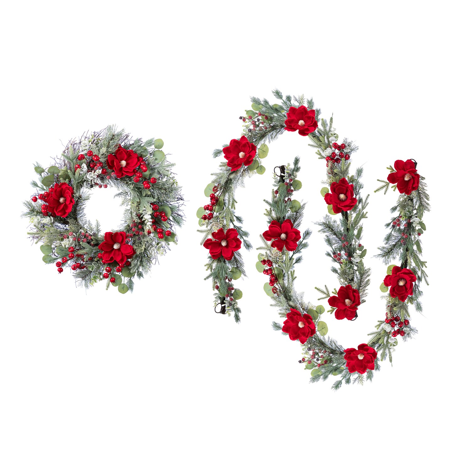 Christmas Red Mangnolia & Berry Teardrop/Wreath/Garland Set