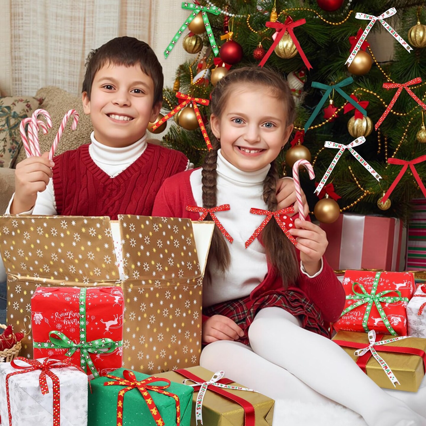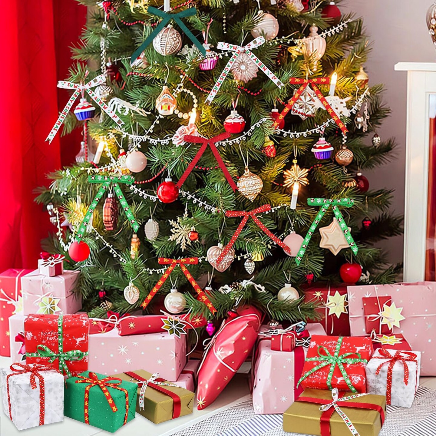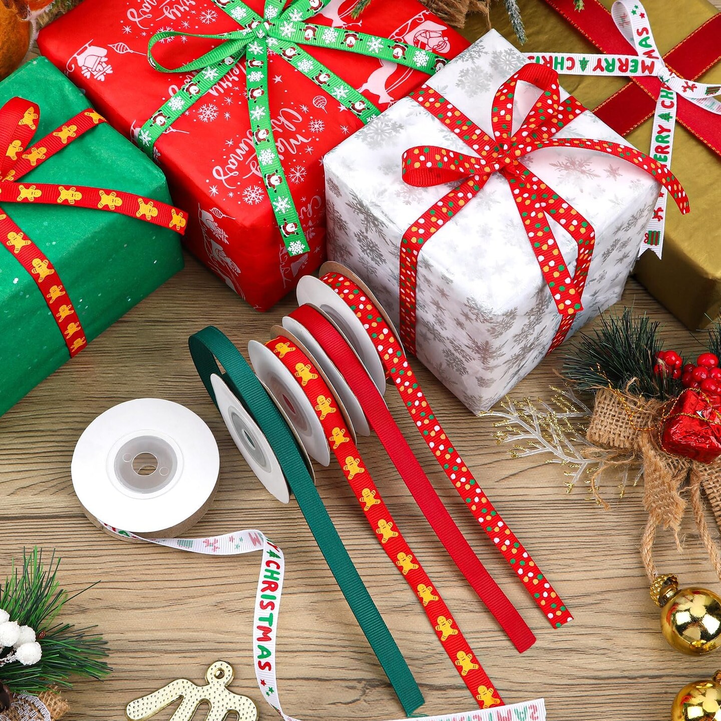 Christmas Ribbon, 6 Rolls 60 Yards Snowflakes Santa Claus Gingerbread Man Dots Ribbon for Christmas Crafts, 10mm Wide Grosgrain Ribbons for Gift Wrapping, Party, Home Decor