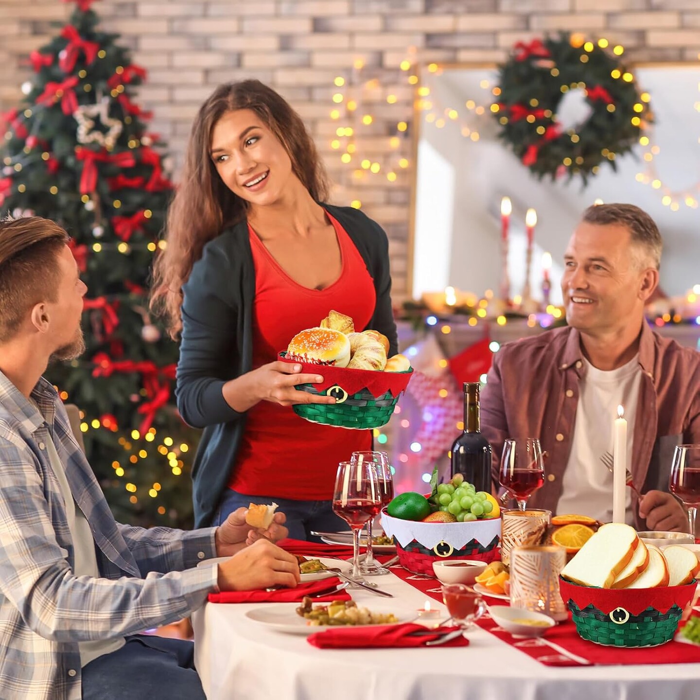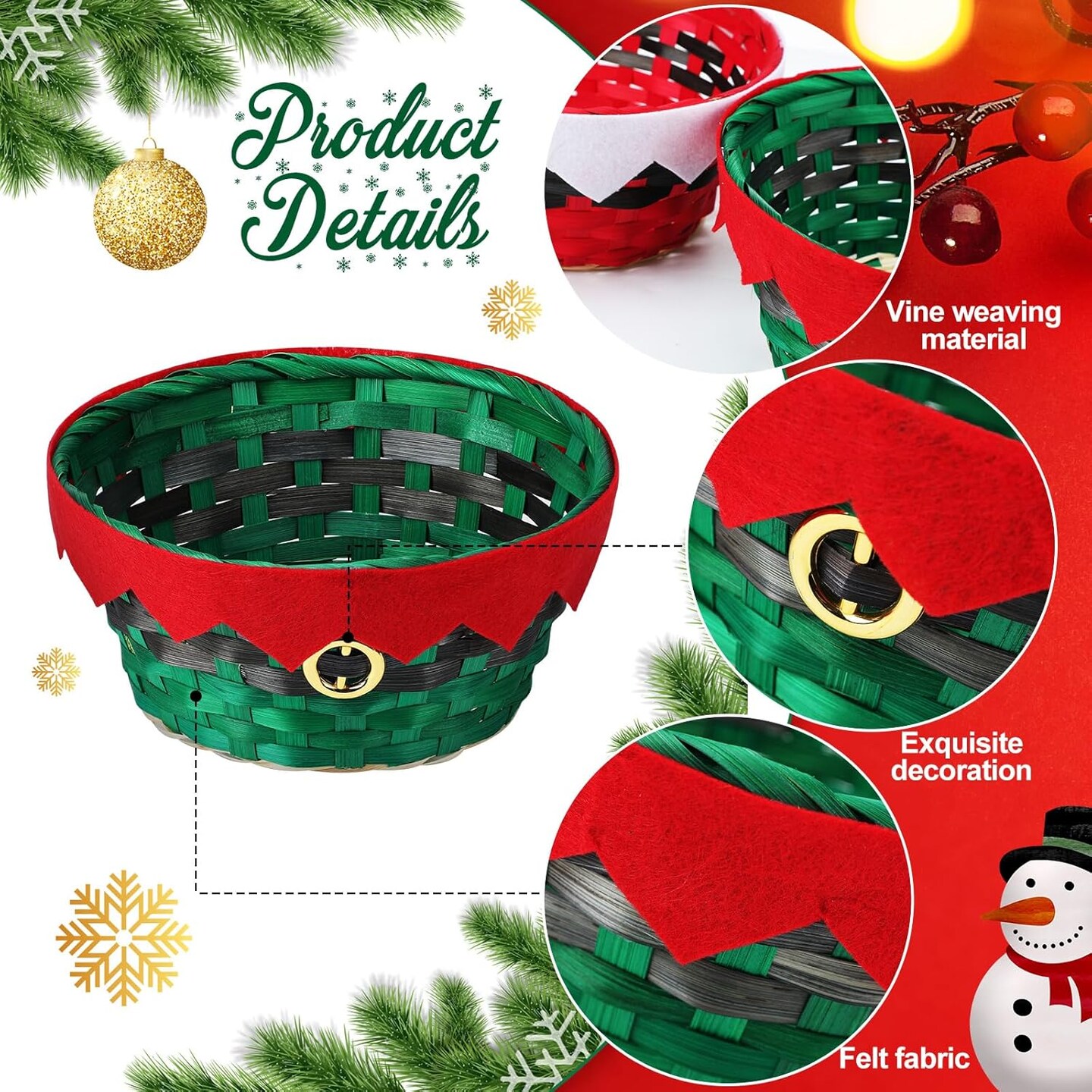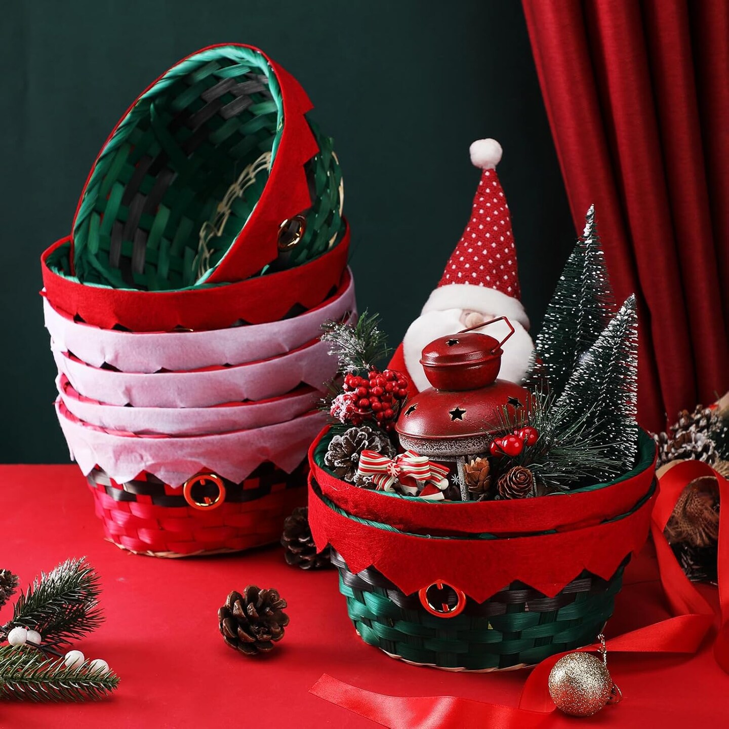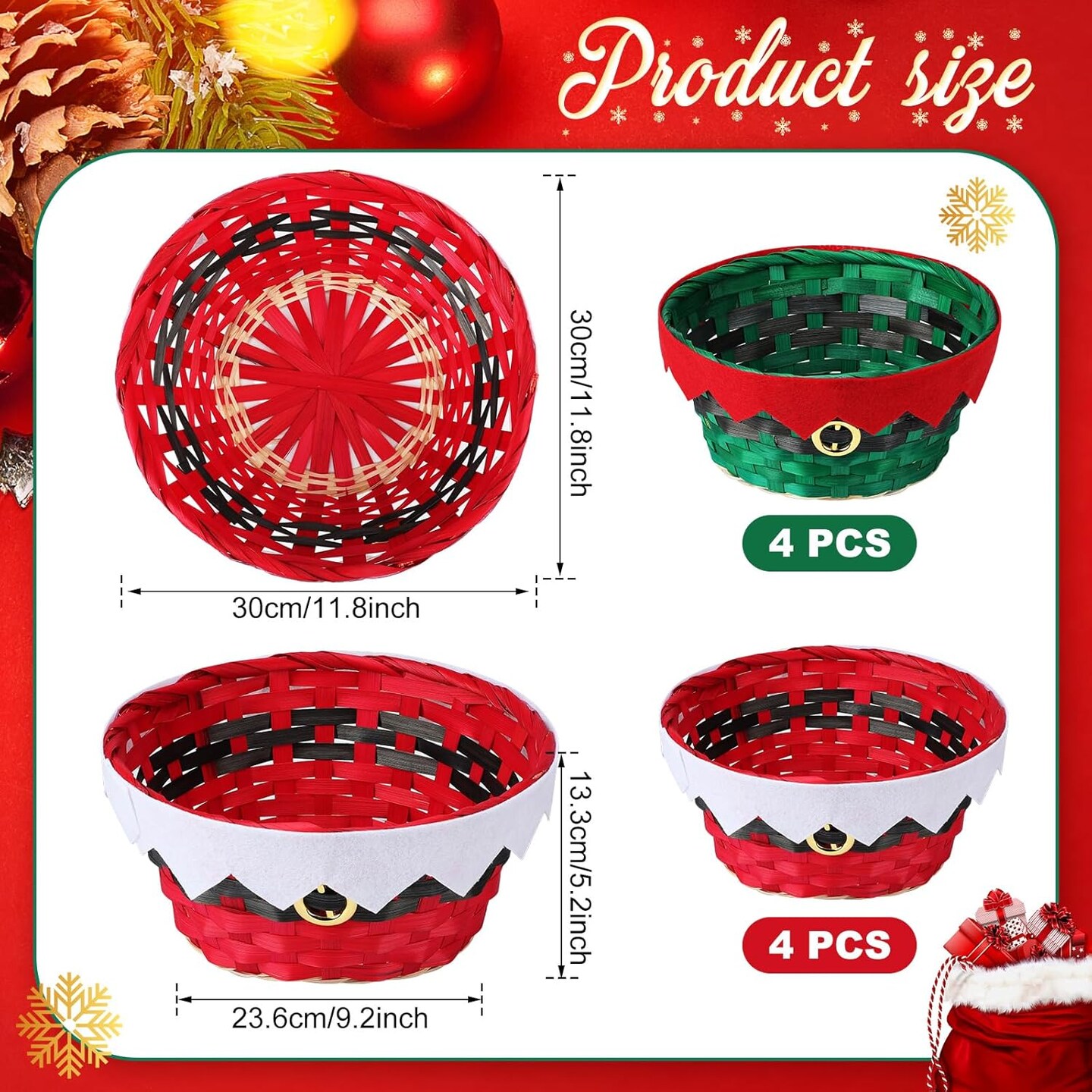 Christmas Round Bamboo Gift Baskets Woven Baskets for Gifts Holiday Character Baskets Xmas Decorative Gift Baskets Empty for Organizing Fruit Bread Party Decoration(8 Pcs)