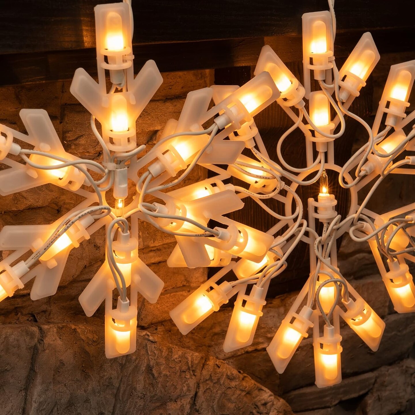 Christmas Snowflake Outdoor Lights Decor - 100 Count 8.5FT (Warm White)