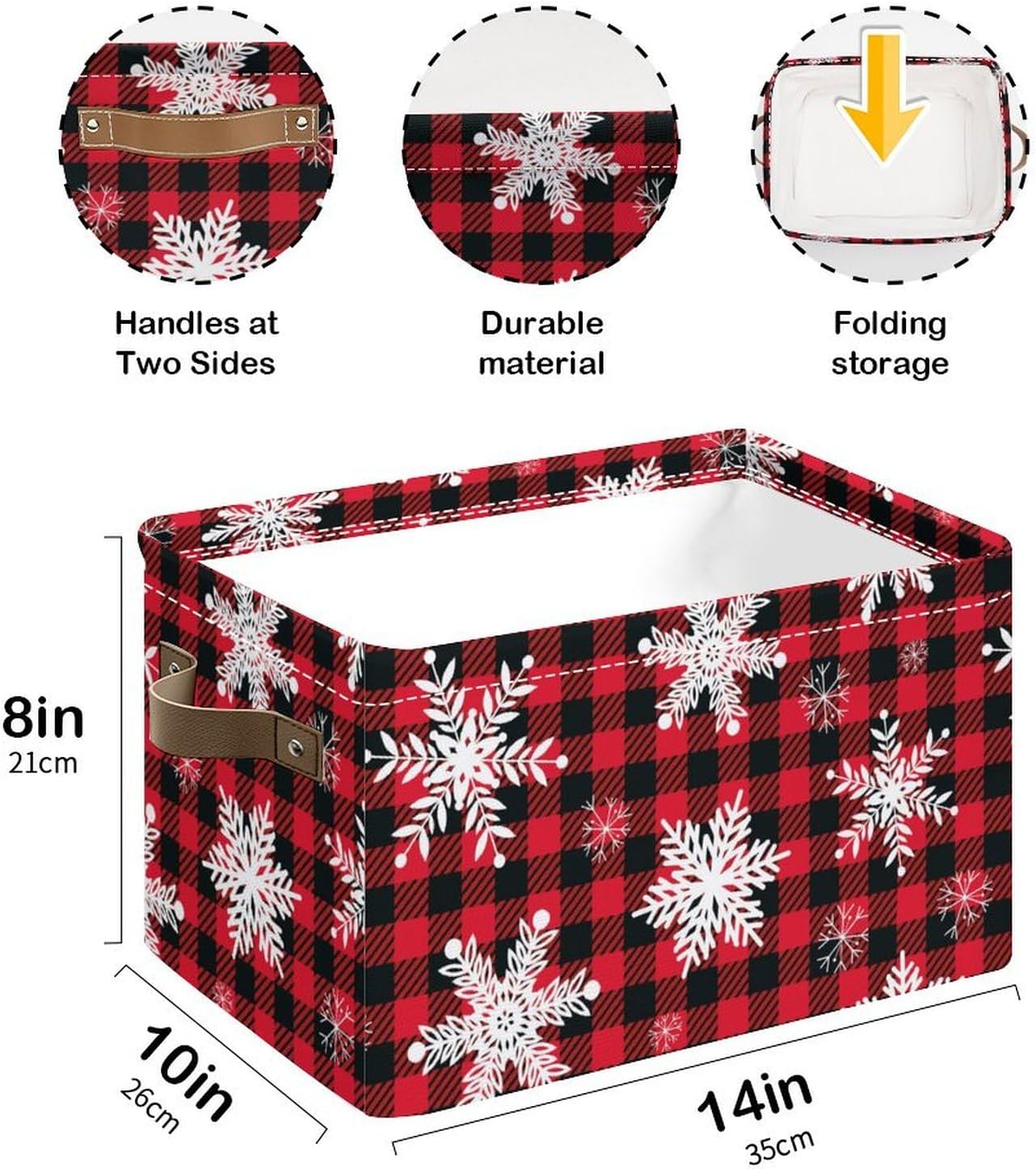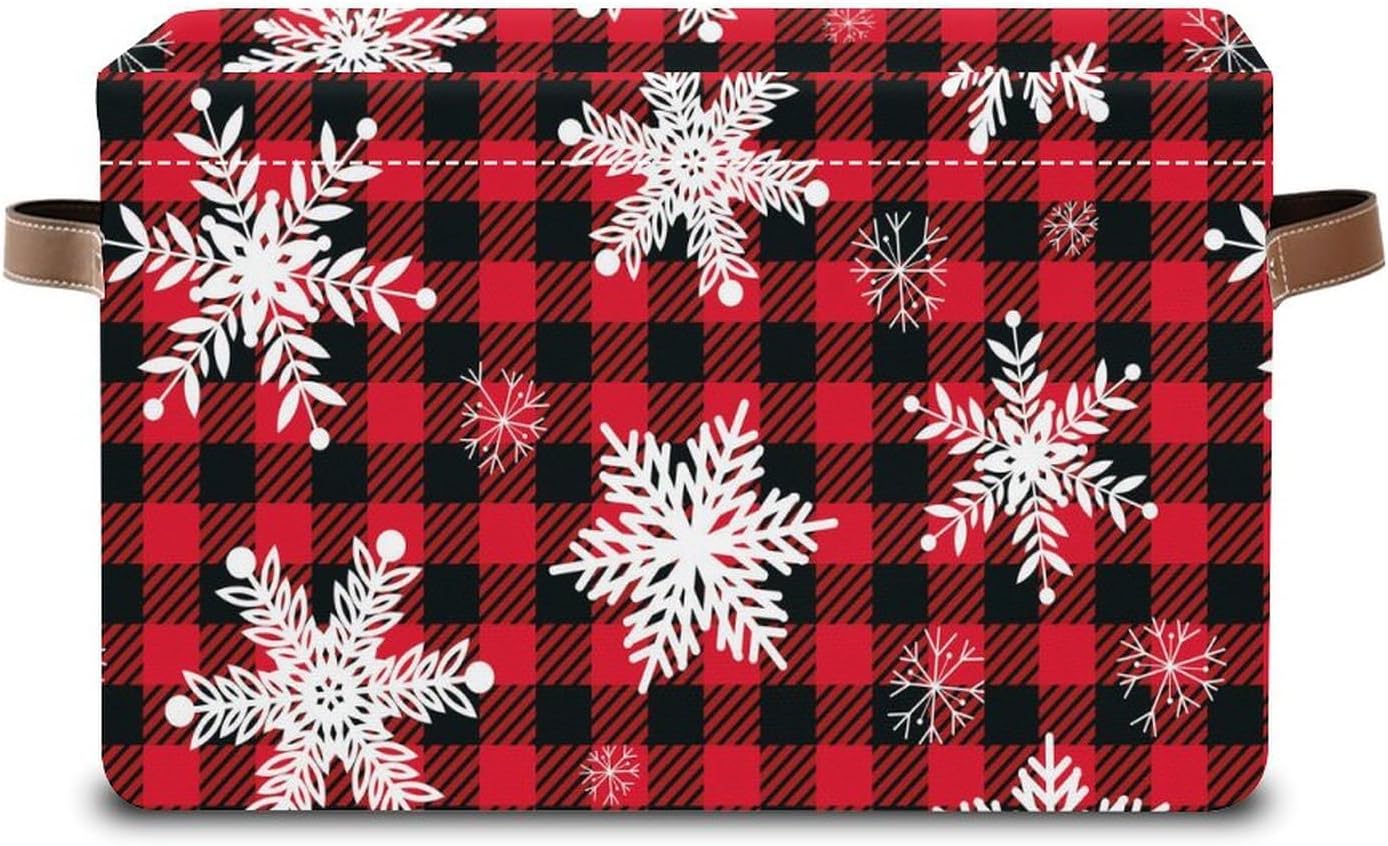Christmas Snowflake Storage Basket, Collapsible Organizer with Handles- Decorative Fabric Organizer for Home Office 14*10*8 In