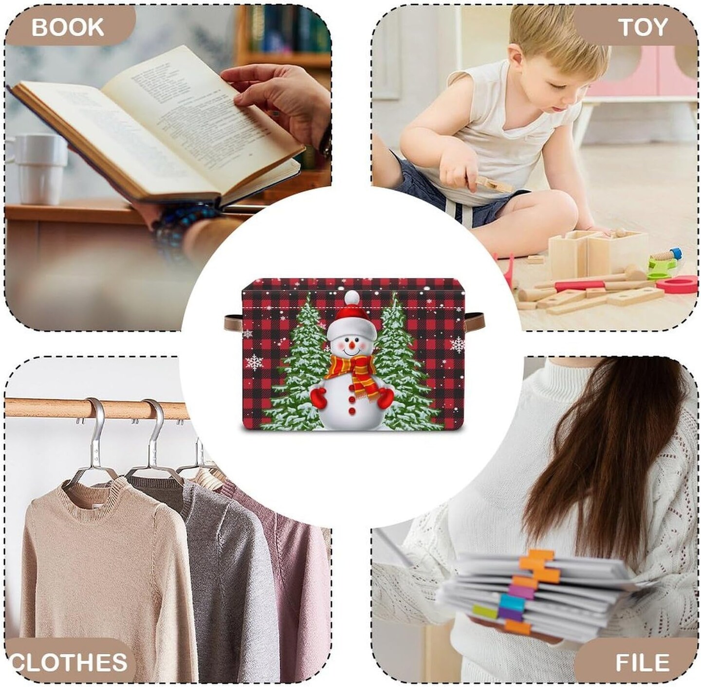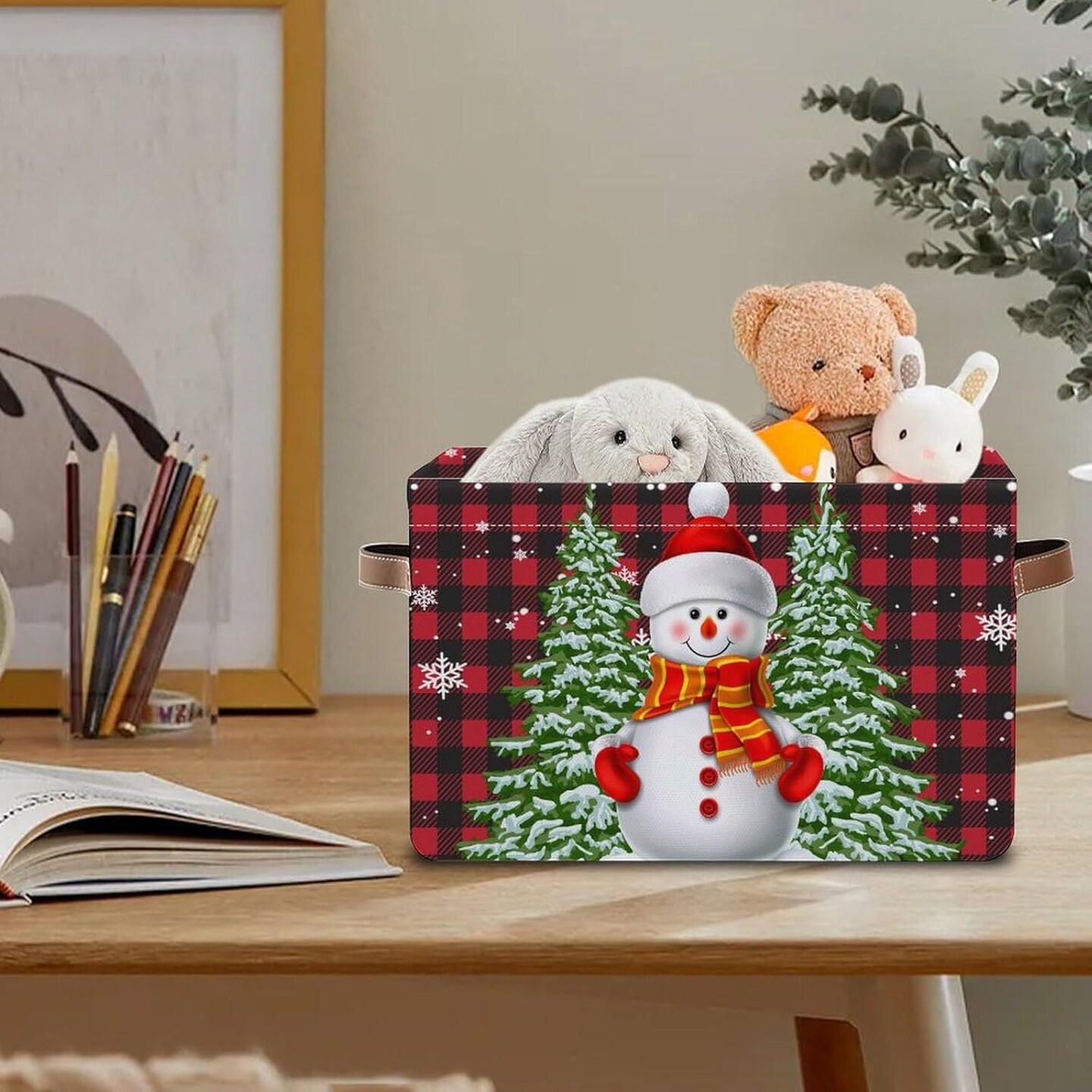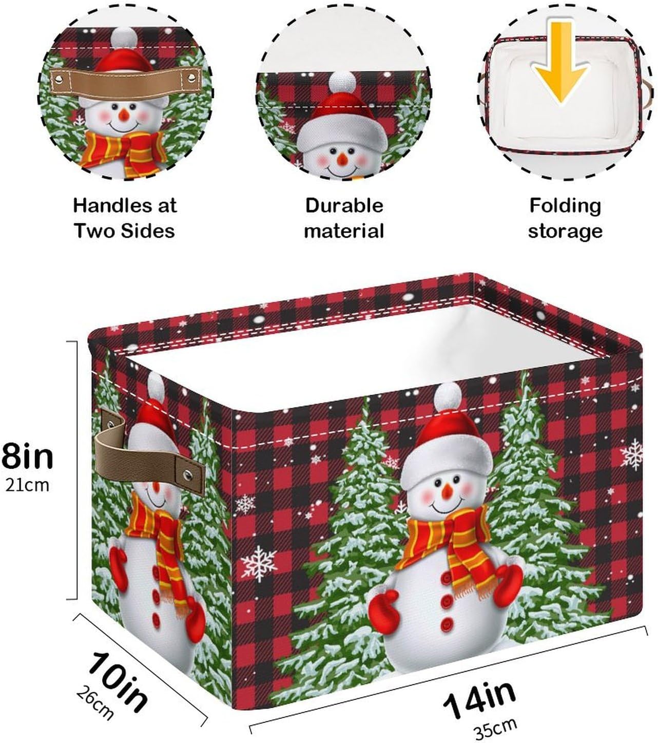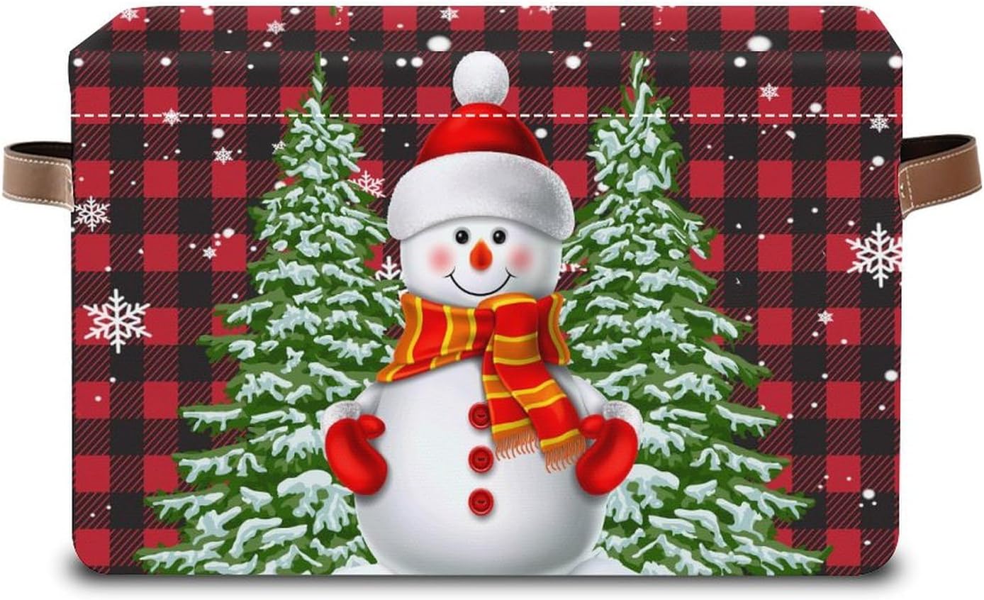 Christmas Snowman Storage Basket Gift Baskets with Handles Foldable Decorative Canvas Storage Bin for Living Room Shelves Office Clothes.14x10x8 In