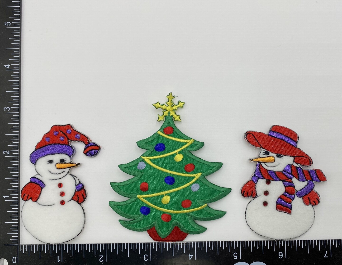Christmas Snowman & Tree Iron-On Patch Set – Holiday Winter Appliqué Trio (3 Pieces)