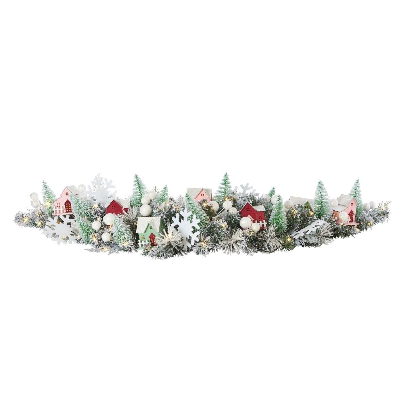 Christmas Snowy Cottage 60in Mantel Swag Pre-Lit with 70 LED Fairy Lights B/O