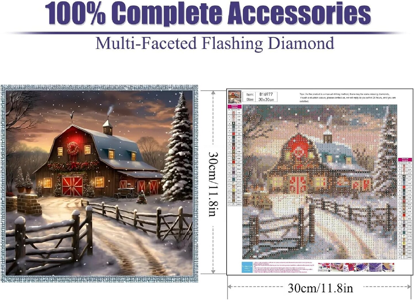 Christmas Snowy Night Diamond Painting Kit – DIY 5D Full Drill Red House Winter Diamond Art for Adults Beginners, Rhinestone Diamond Dots Craft Picture for Holiday Home Wall Decor, 12x12 Inch