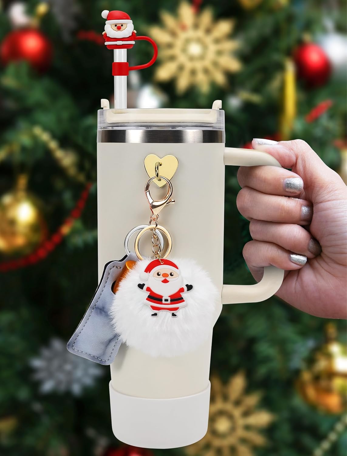 Christmas Stanley Cup Accessories Set- Christmas Silicone Straw Cover, Silicone Stanley Cup Boot, Lipstick Holder, Christmas Charms for Stanley Cup 40oz & 30oz Tumbler. (Christmas White Elk)