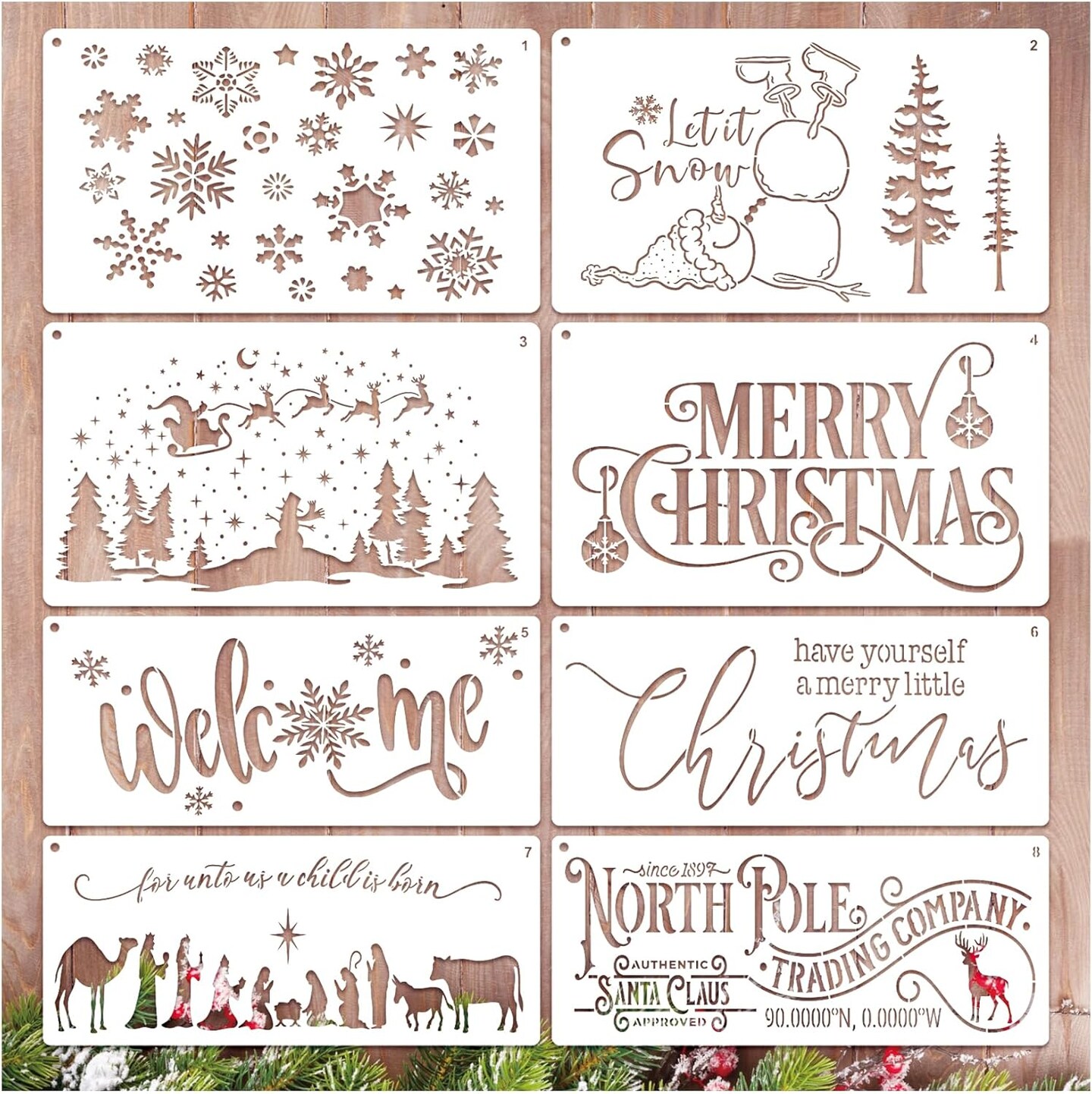 Christmas Stencils for Door Mats (long8) 14"L x 8"W