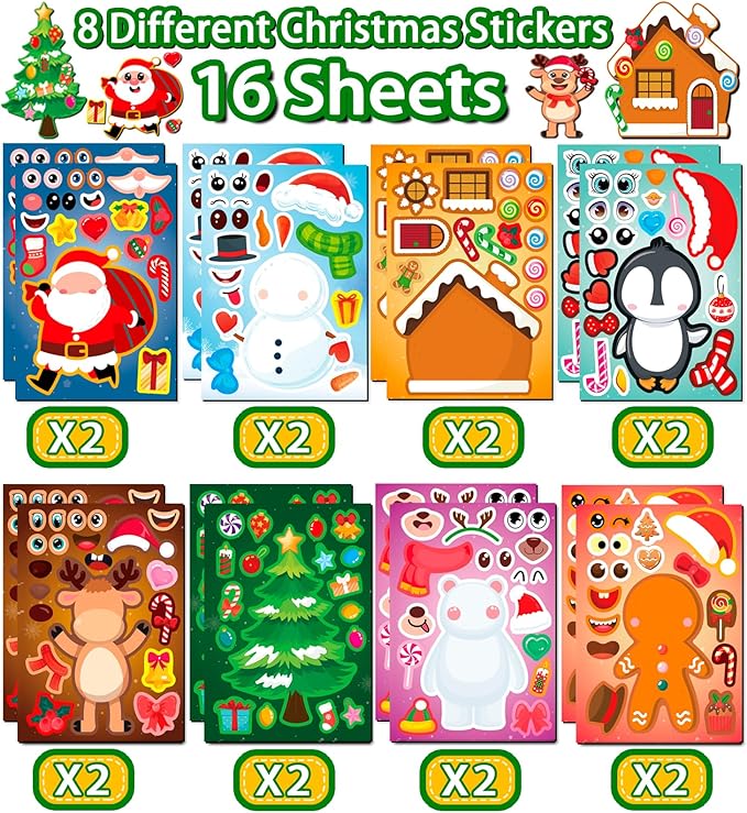Christmas Stickers for Kids - Cute Stickers Christmas Gift - Christmas Stocking Stuffers for Kids - Christmas Decorations,Christmas Party Favors for Boys and Girls Ages 3 4 5 6 7 8