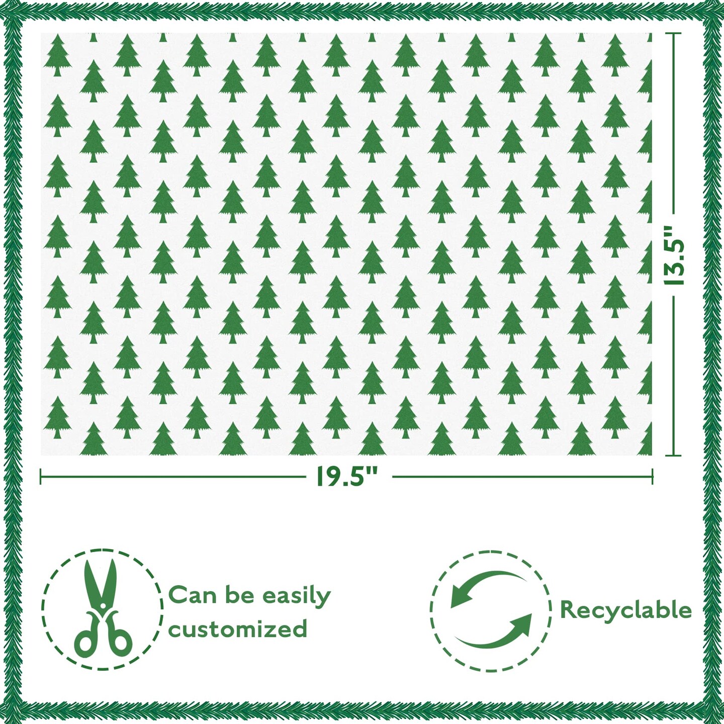 Christmas Tissue Paper Gift Wrapping Paper, 120 Sheets, 13.5" X 19.5", White, Red, Green, Red Stripe, Christmas Trees Design