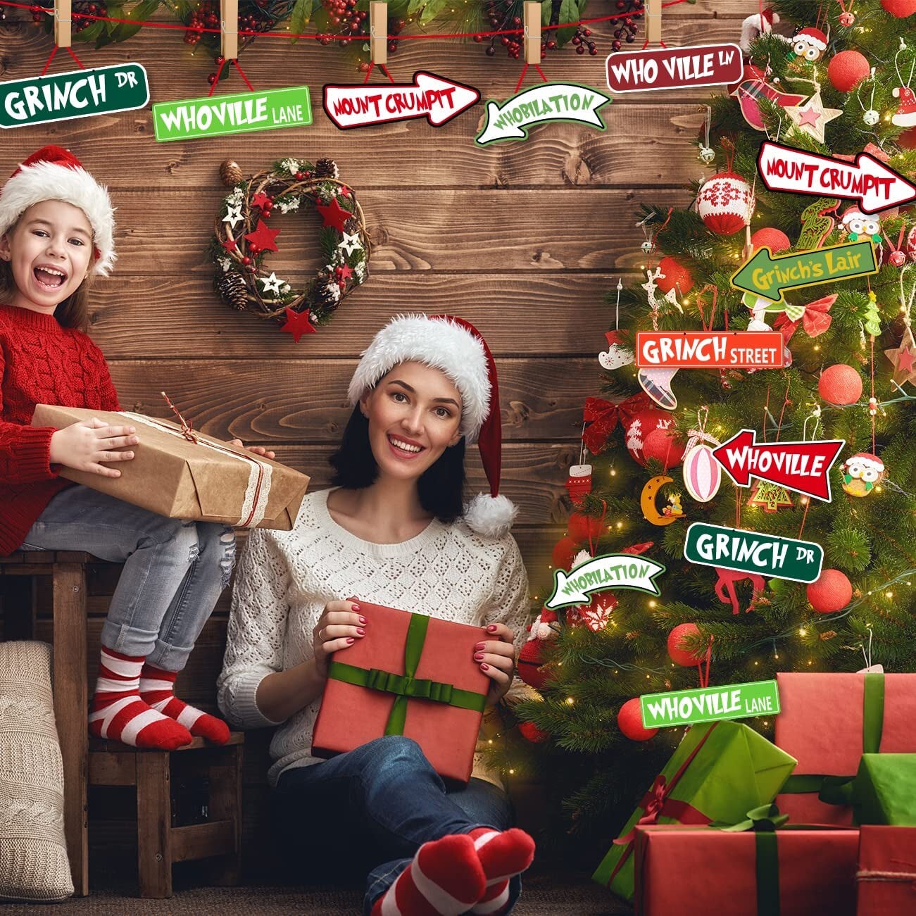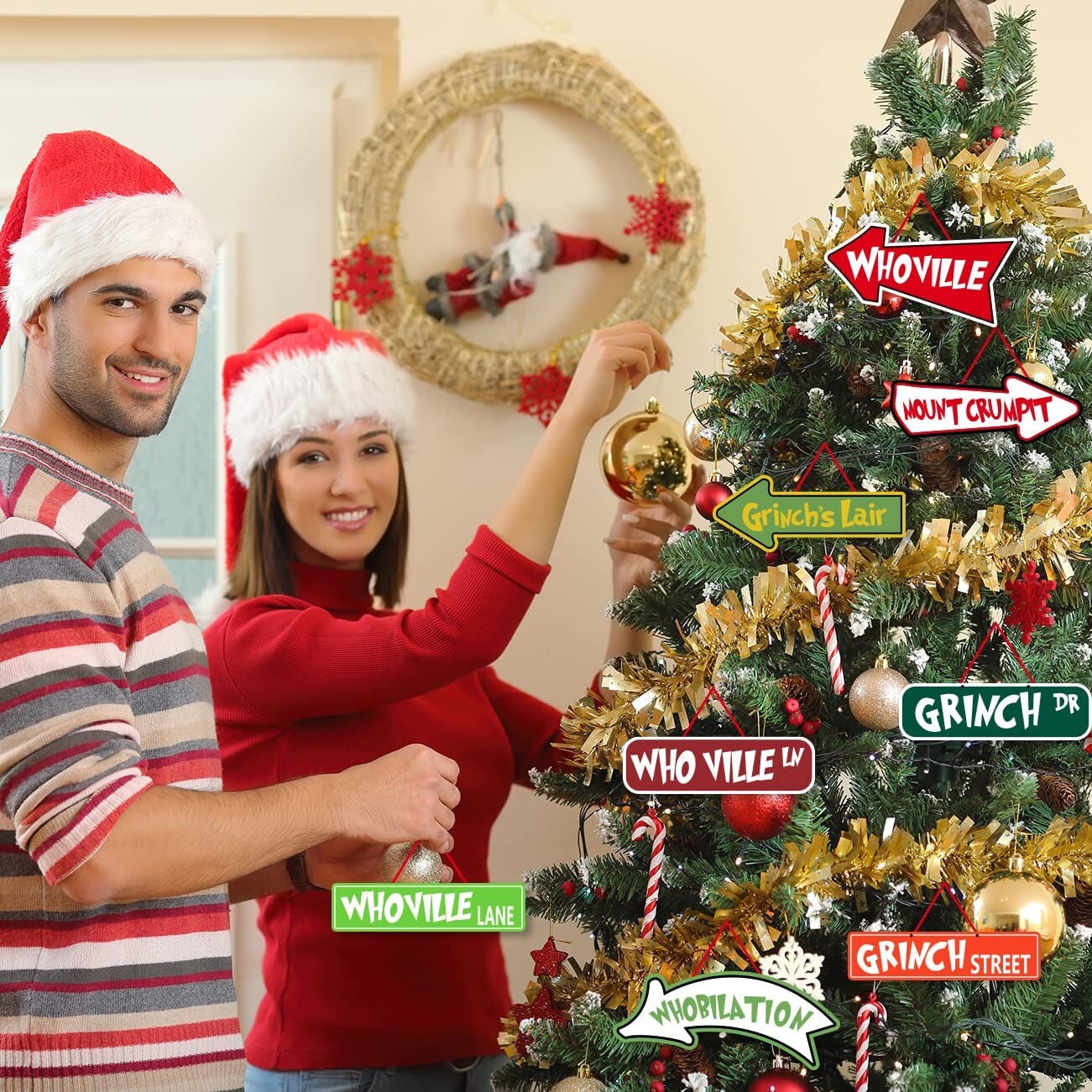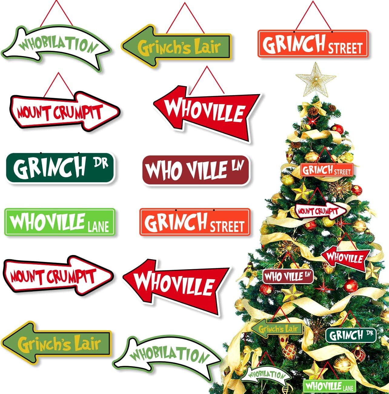 Christmas Tree Decorations Greench'S Christmas Ornament Paper Cards Hanging Welcome to Whoville Christmas Tree Decorations for Winter Christmas Furry Greench'S Lair Themed Party Favor 16Pcs