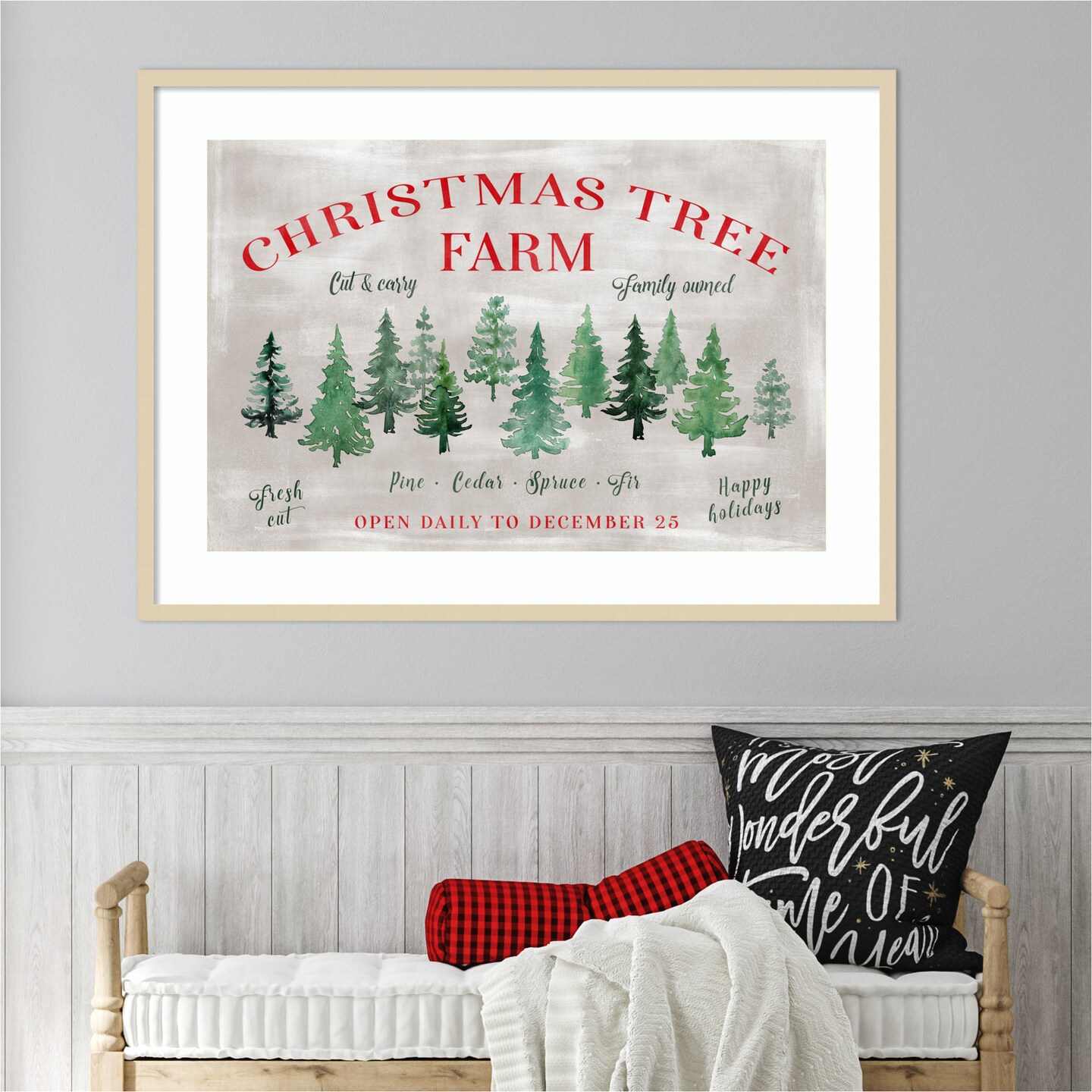 Christmas tree farm sign by Rosana Laiz Blursbyai Wood Framed Wall Art Print