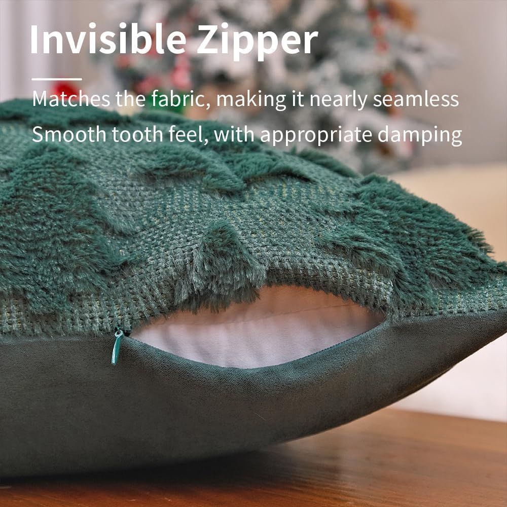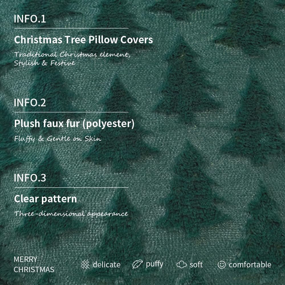 Christmas Tree Pillow Covers 18x18 Inch Set of 2, Xmas Winter Soft Plush Faux Fur Wool Decorative Throw Pillows Farmhouse Holiday Cushion Case for Home Decoration (Green) GC003-18