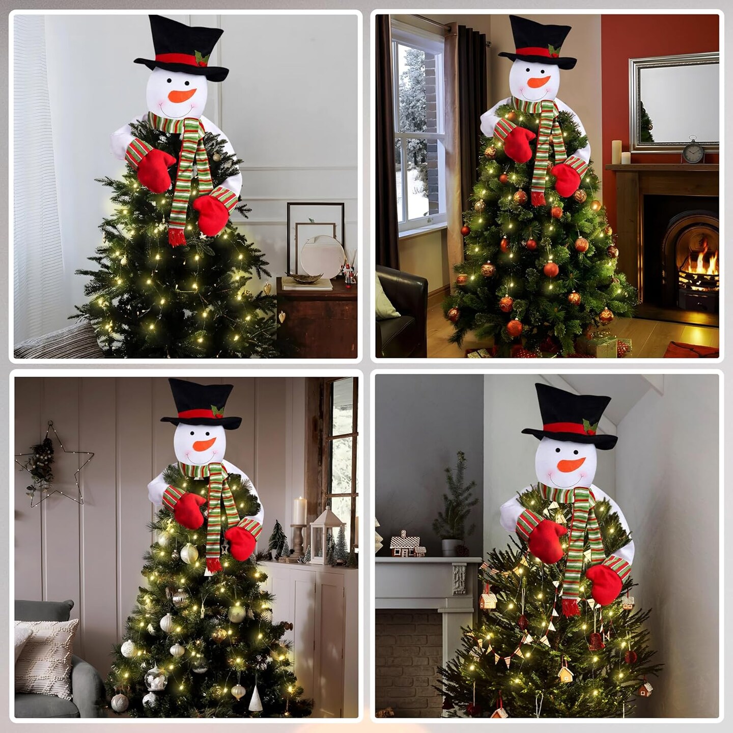 Christmas Tree Topper Snowman Hugger with Lights Strips - Xmas Holiday Winter Wonderland Party Decoration Ornament Supplies