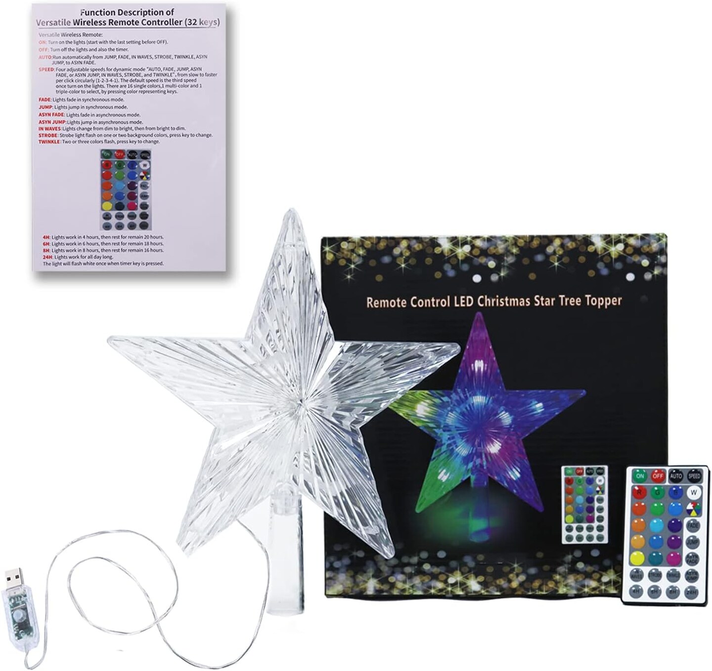 Christmas Tree Topper Star Lighted(Usb Powered Led Color-changing)