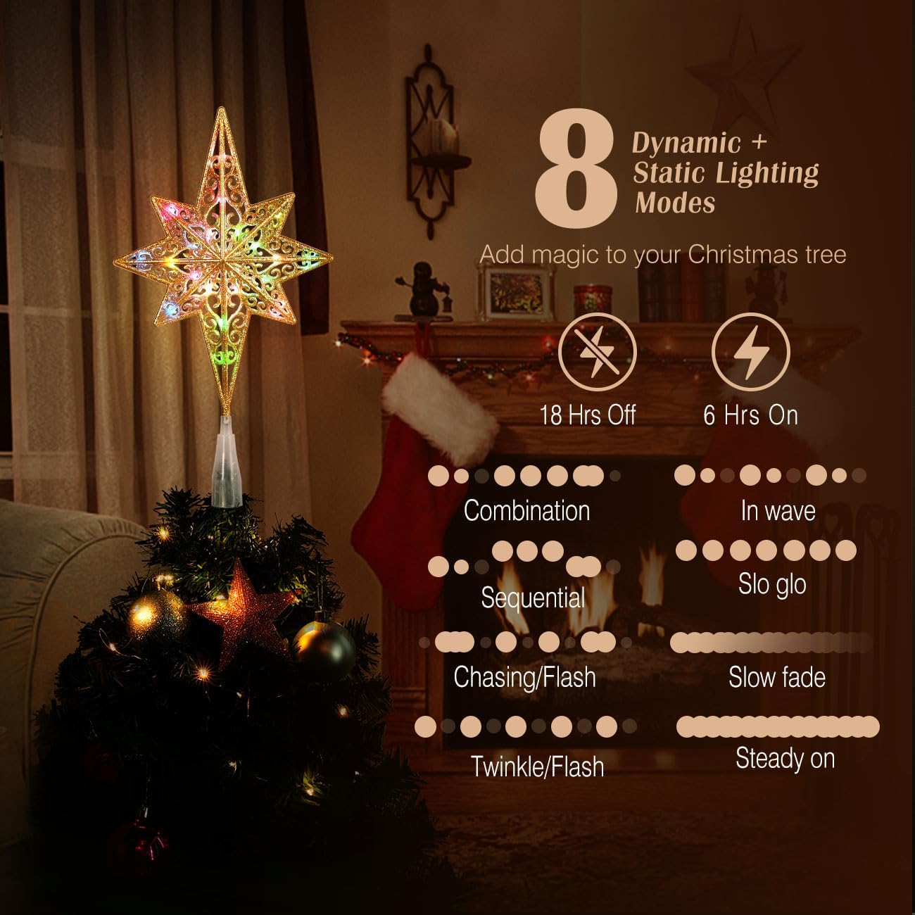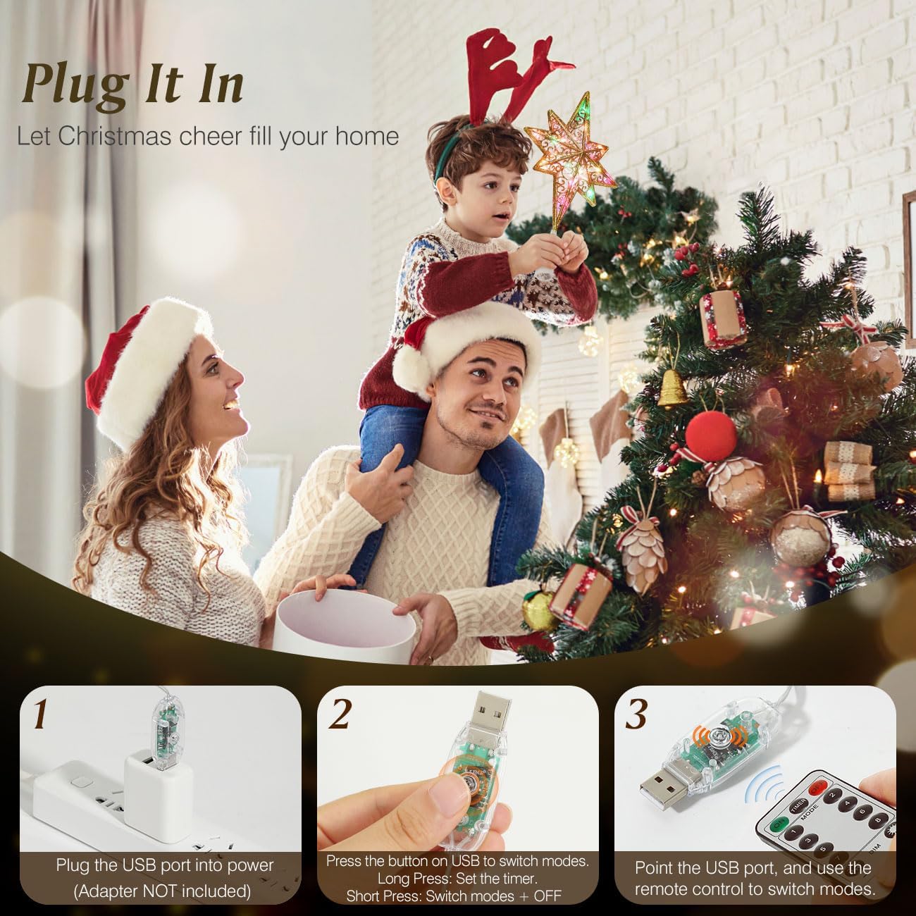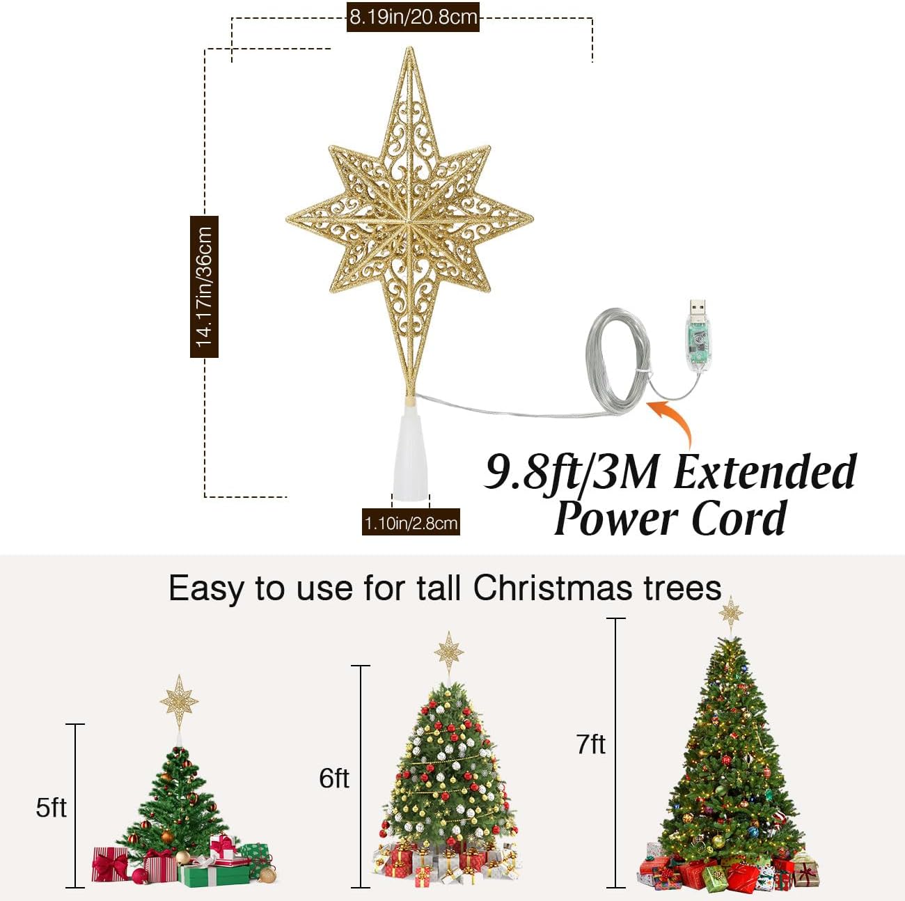 Christmas Tree Topper, USB Powered Remote Controlled 14 Inch (Gold F)