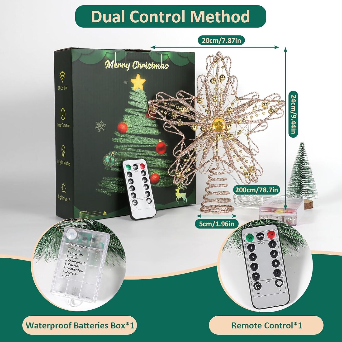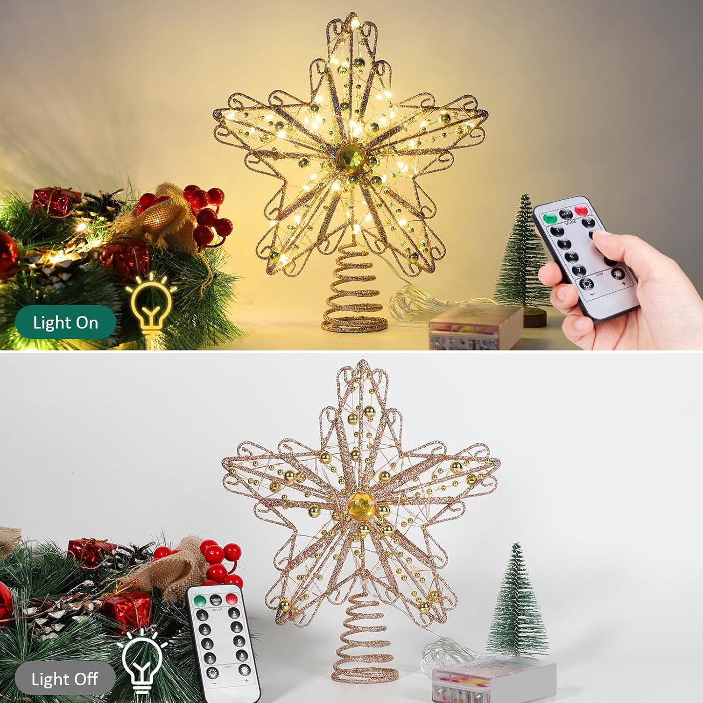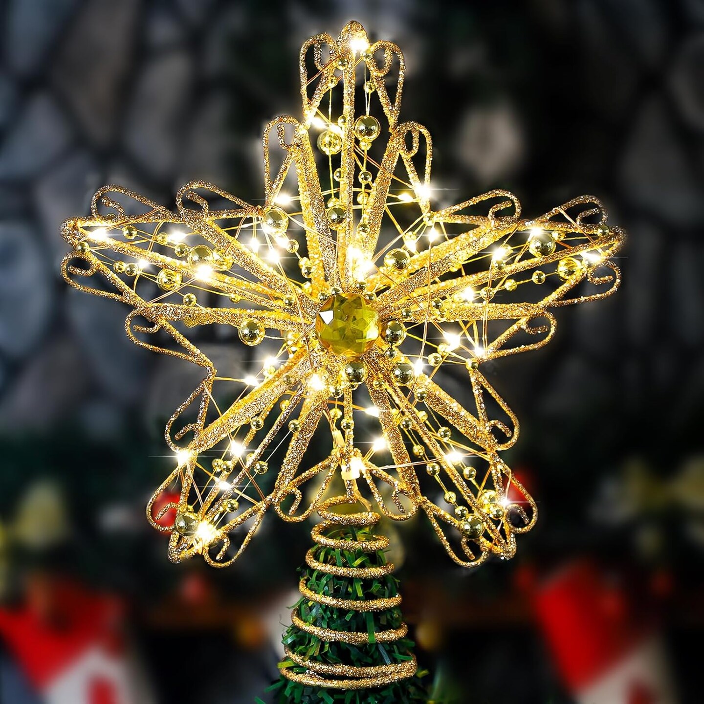 Christmas Tree Topper with Diamond, 40 LED Star Tree Topper, Glitter Metal Christmas Tree Topper Lighted, LED Ornament Tree Topper for Christmas Decorations, Home or Holiday Decor