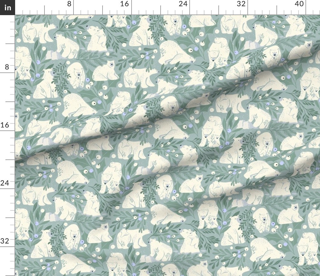 Christmas Winter Polar Bears Mistletoe Arctic Animals Ice Snow Berries Juniper Botanical Baby Polar Bear Holidays Christmas Crafting Snow Custom Printed Fabric by Spoonflower Various Fabrics by the Yard or Fat Quarter