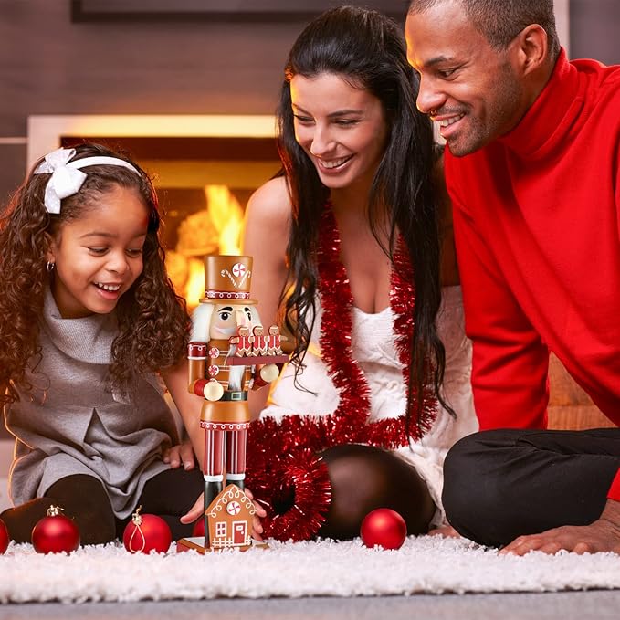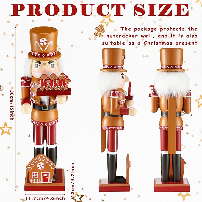 Christmas Wooden Nutcracker 15 Inch Traditional Christmas Nutcracker Decor Festive Christmas Decor for Christmas Party Shelves and Tables (Gingerbread Style)