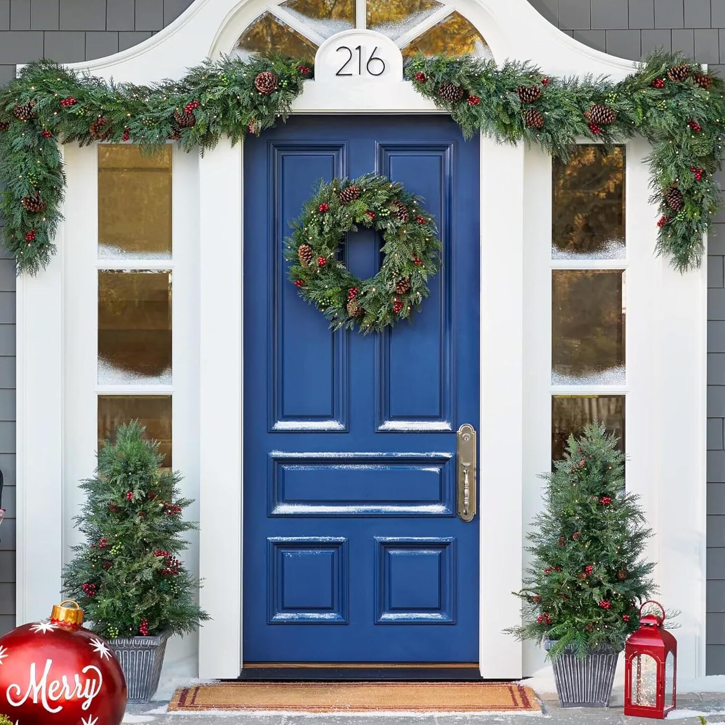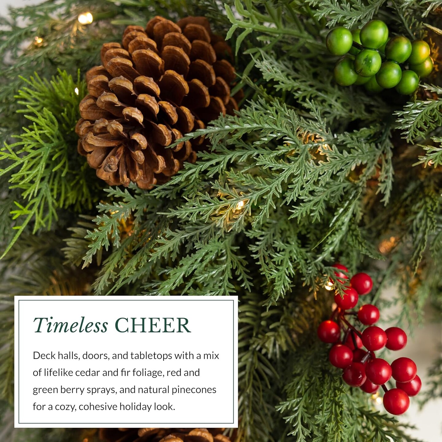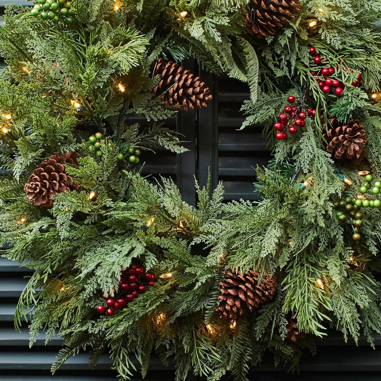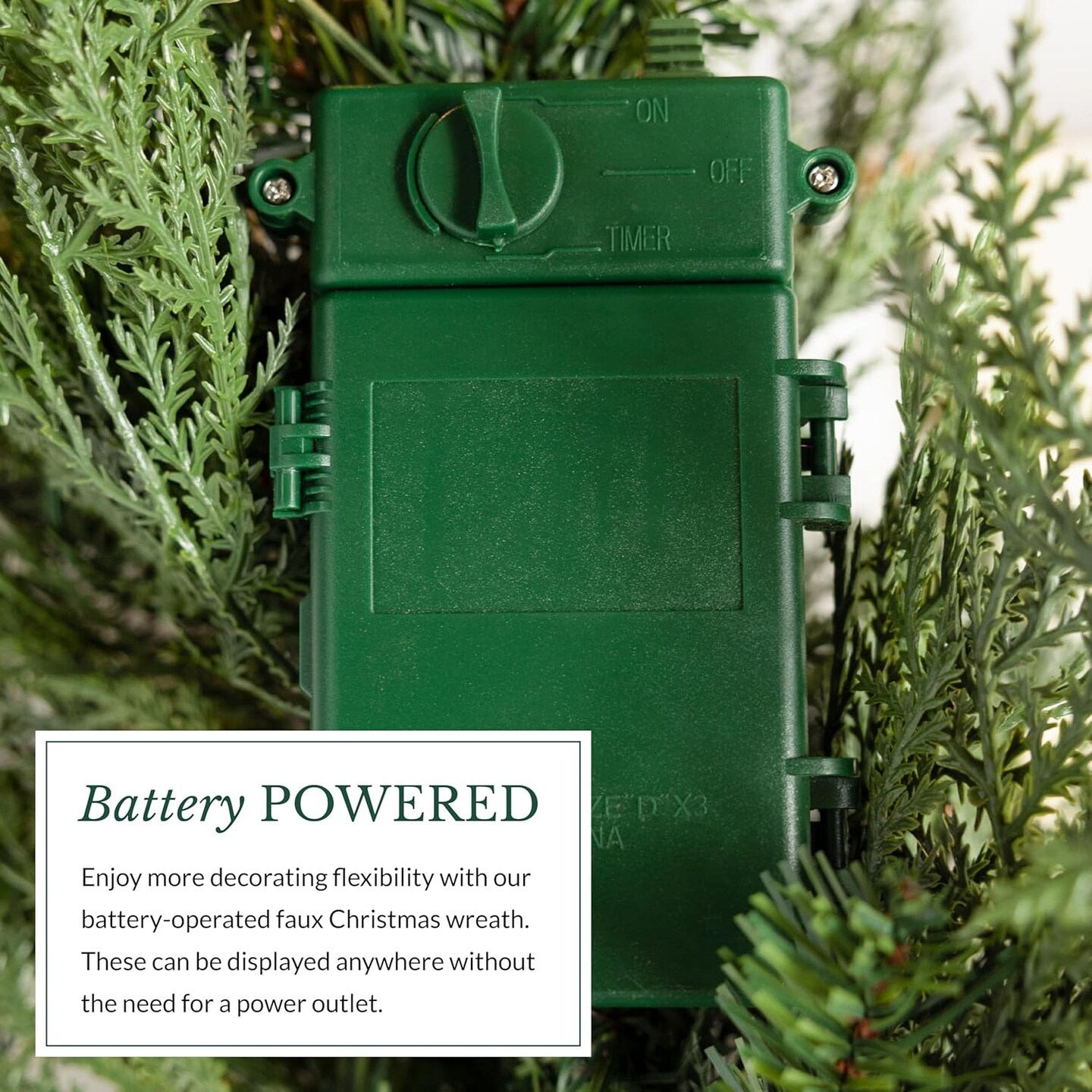 Christmas Wreath with Battery-Operated LED Clear Lights (Winter Evergreen 30") 22 x 21.63 x 7.38