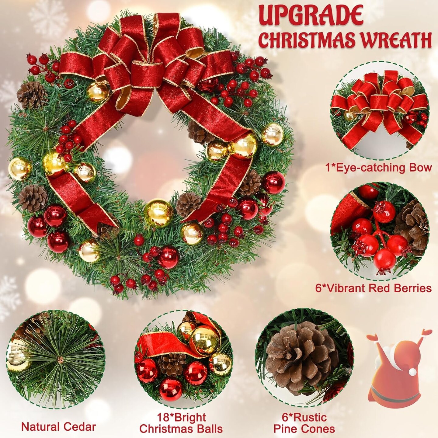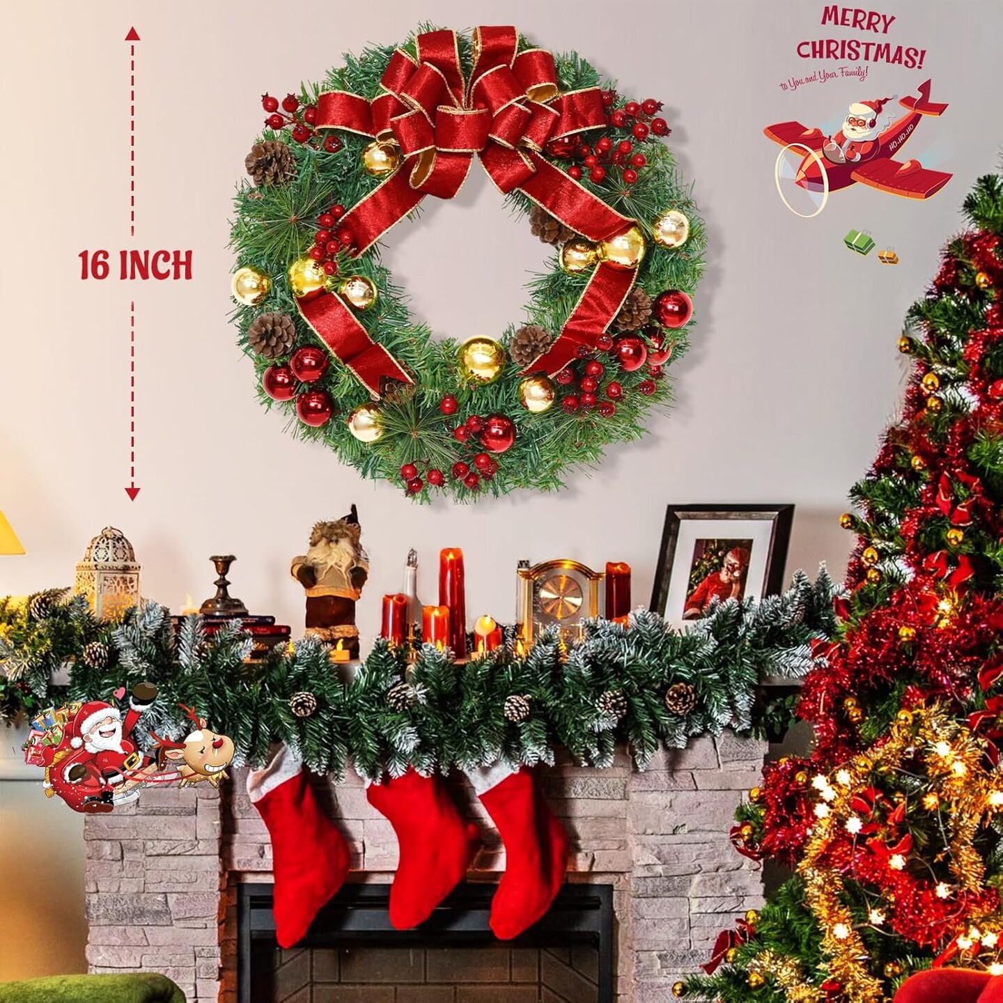 Christmas Wreaths for Front Door with Bow