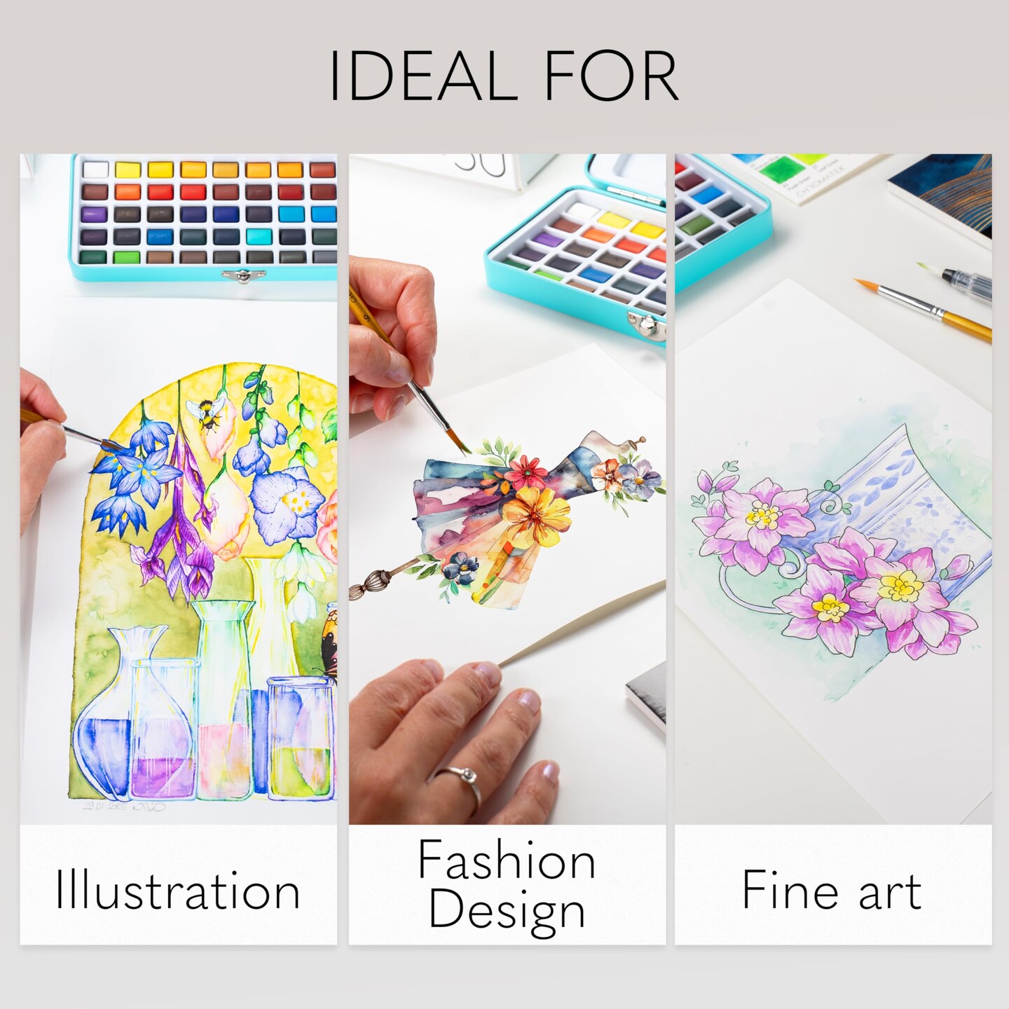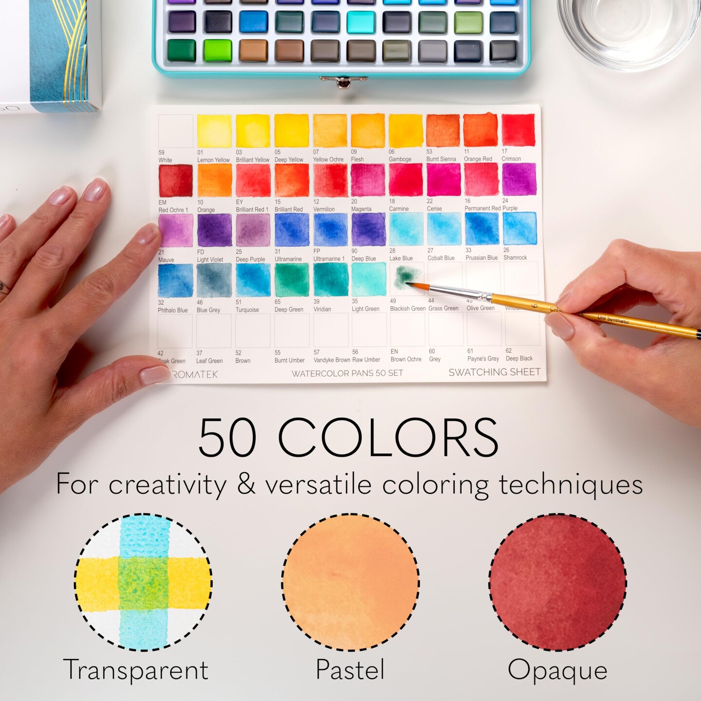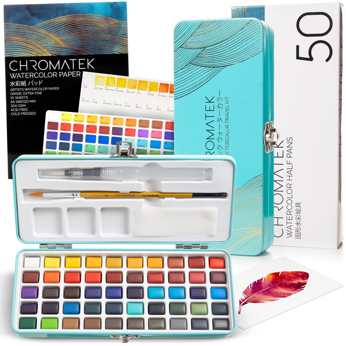 CHROMATEK Watercolor Paint Set, 50 Vivid Colors, Water Color Paper Pad, Brush, Aqua Pen, Palette, Color Chart, Swatch Sheets & Metal Travel Case, Premium All-In-One Art Travel Kit Art Supplies