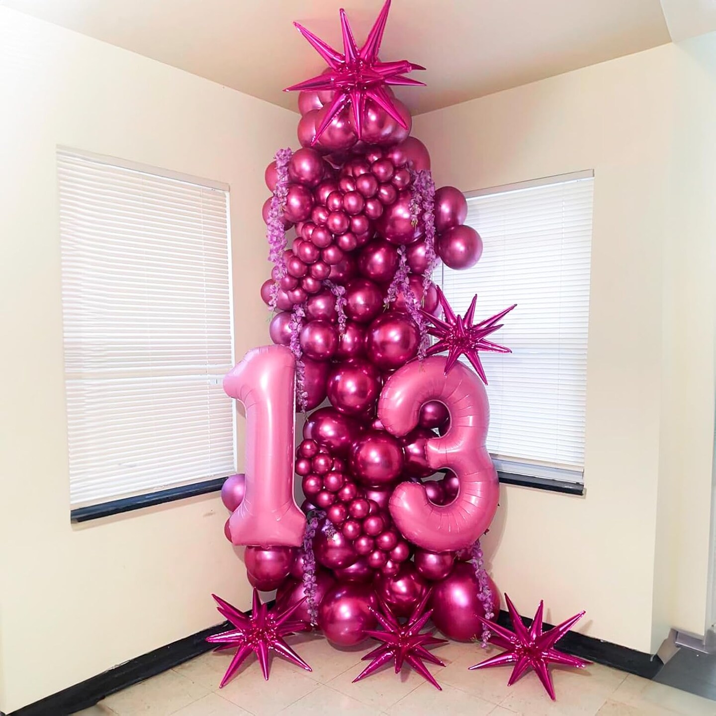 Chrome Hot Pink Balloons Arch Kit, 100 Packs Different Sizes 12 10 5 Inches Metallic Fuschia Pink Balloon Garland Arch Kit, Shiny Fuchsia Balloons for Girls Women Birthday Wedding Decoration