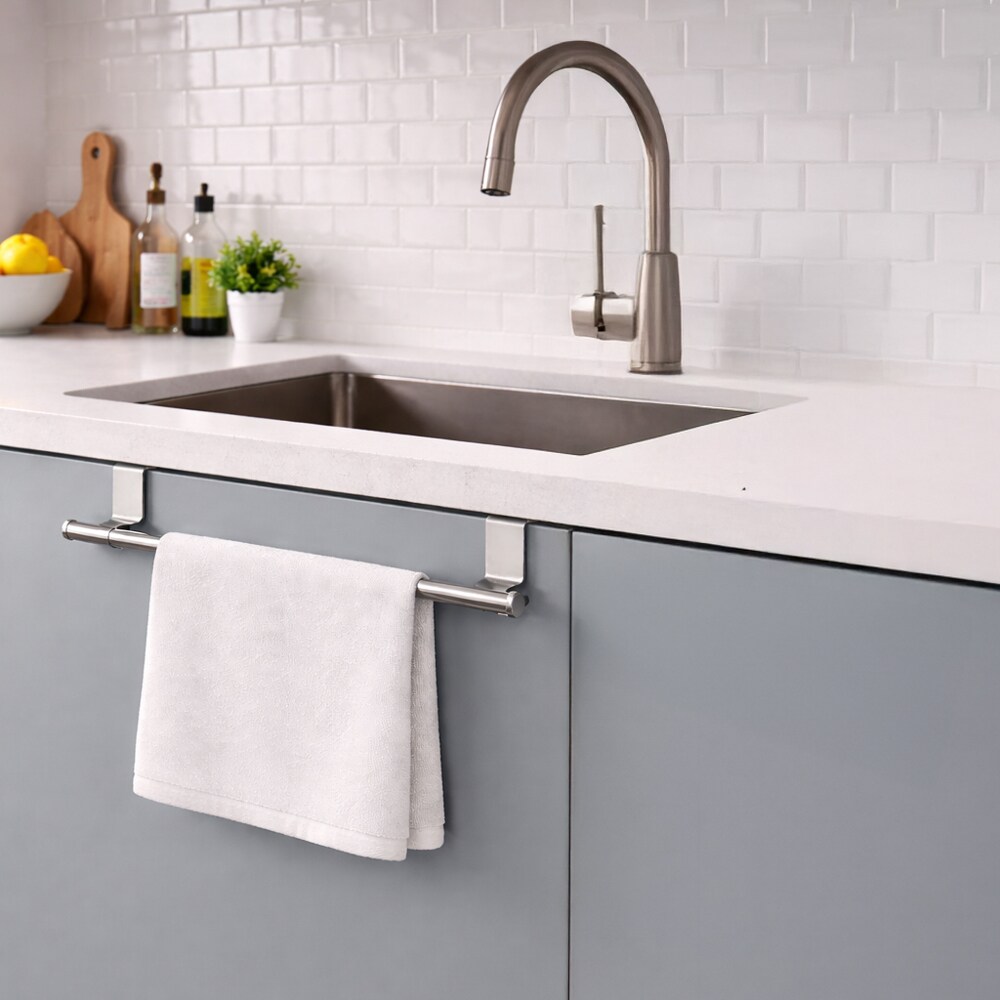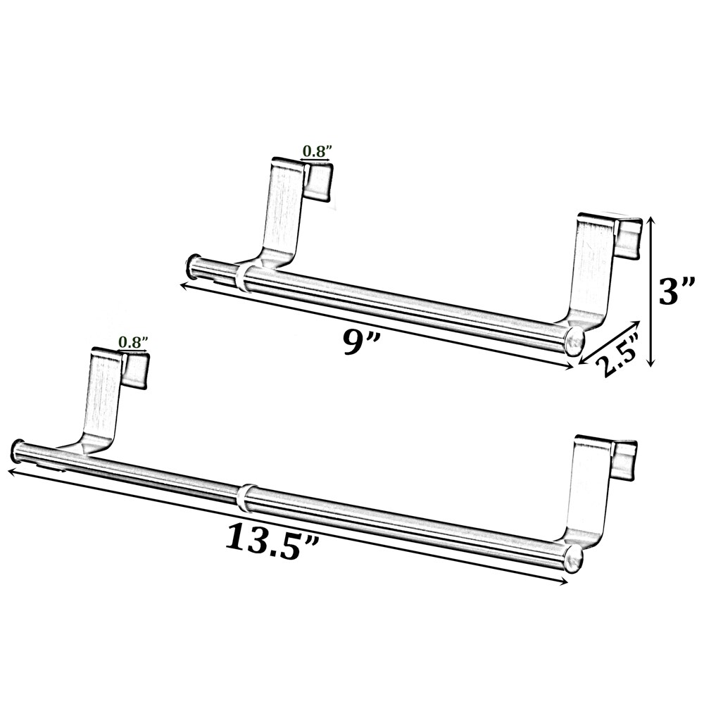 Chrome Over the Door Extendable Towel Holder Rack for the Kitchen, Vanity, and Bathroom