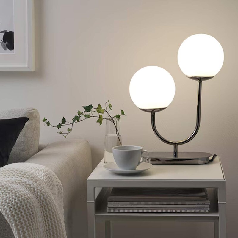 Chrome Plated Table Lamp with Opal Glass Shade 17"