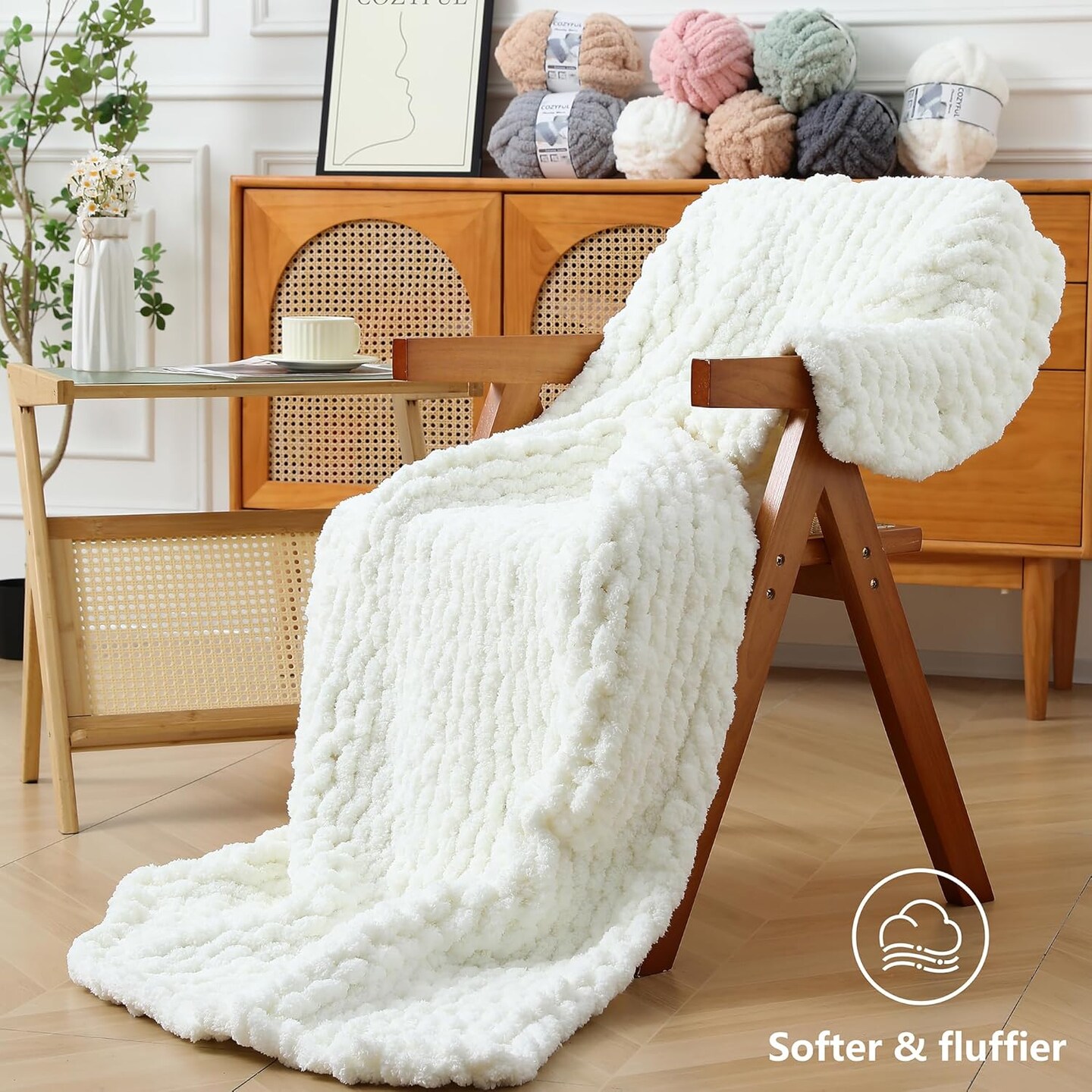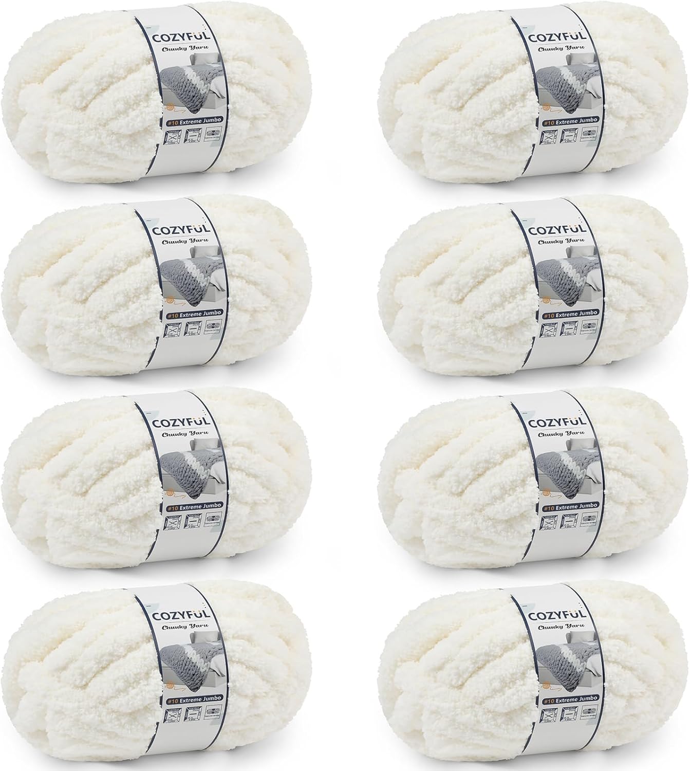 Chunky Chenille Yarn #10 – 8-Pack Jumbo Super Bulky Yarn, 25 yds / 8 oz Each, Cream – Thick Fluffy Yarn for Hand Knitting, Crocheting, Blankets & DIY Crafts