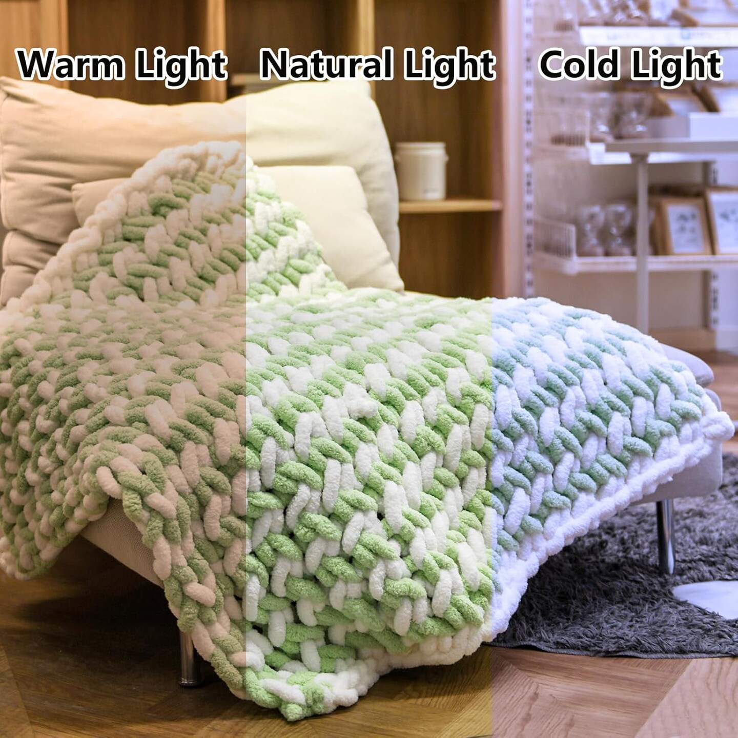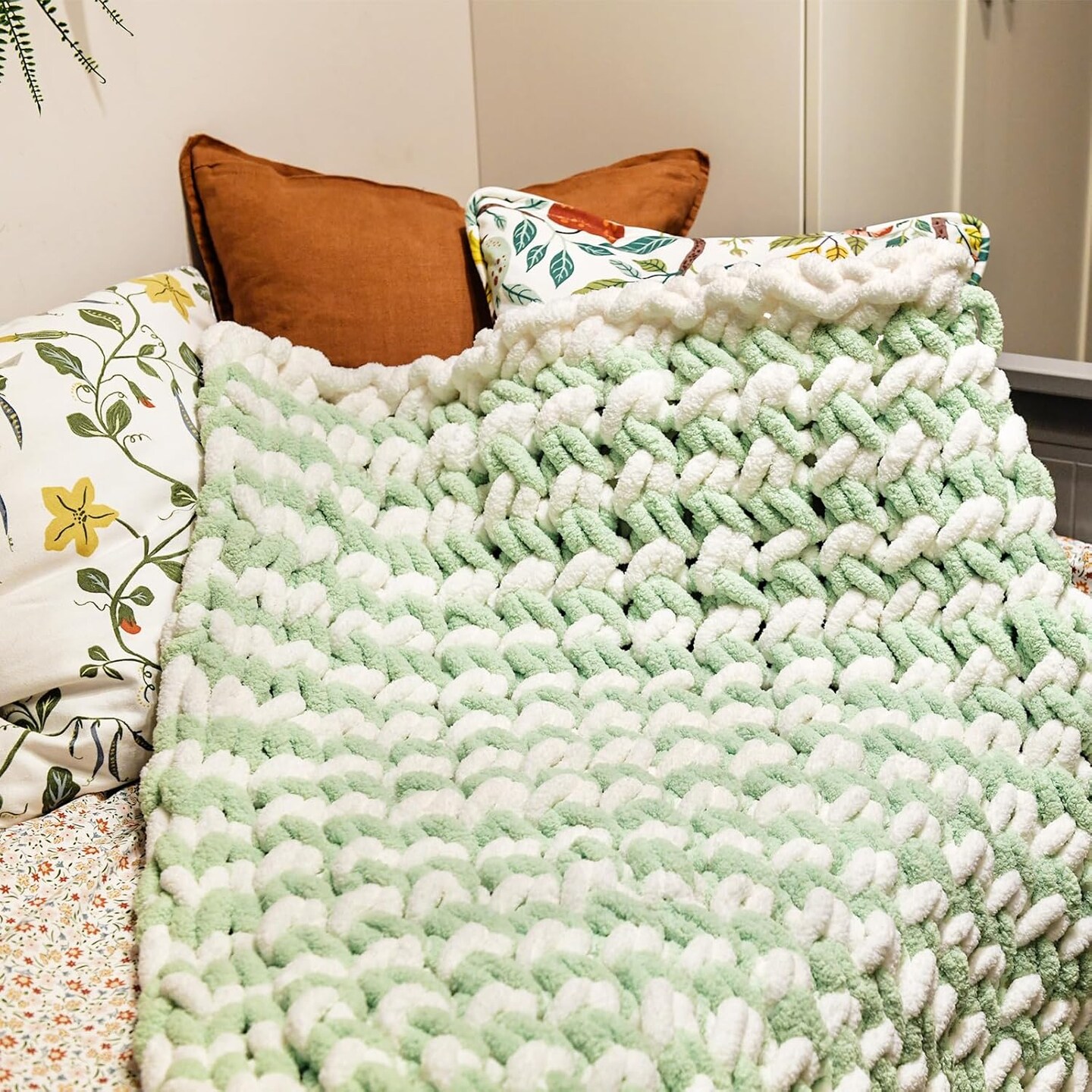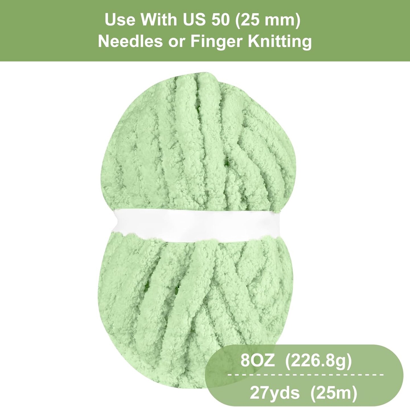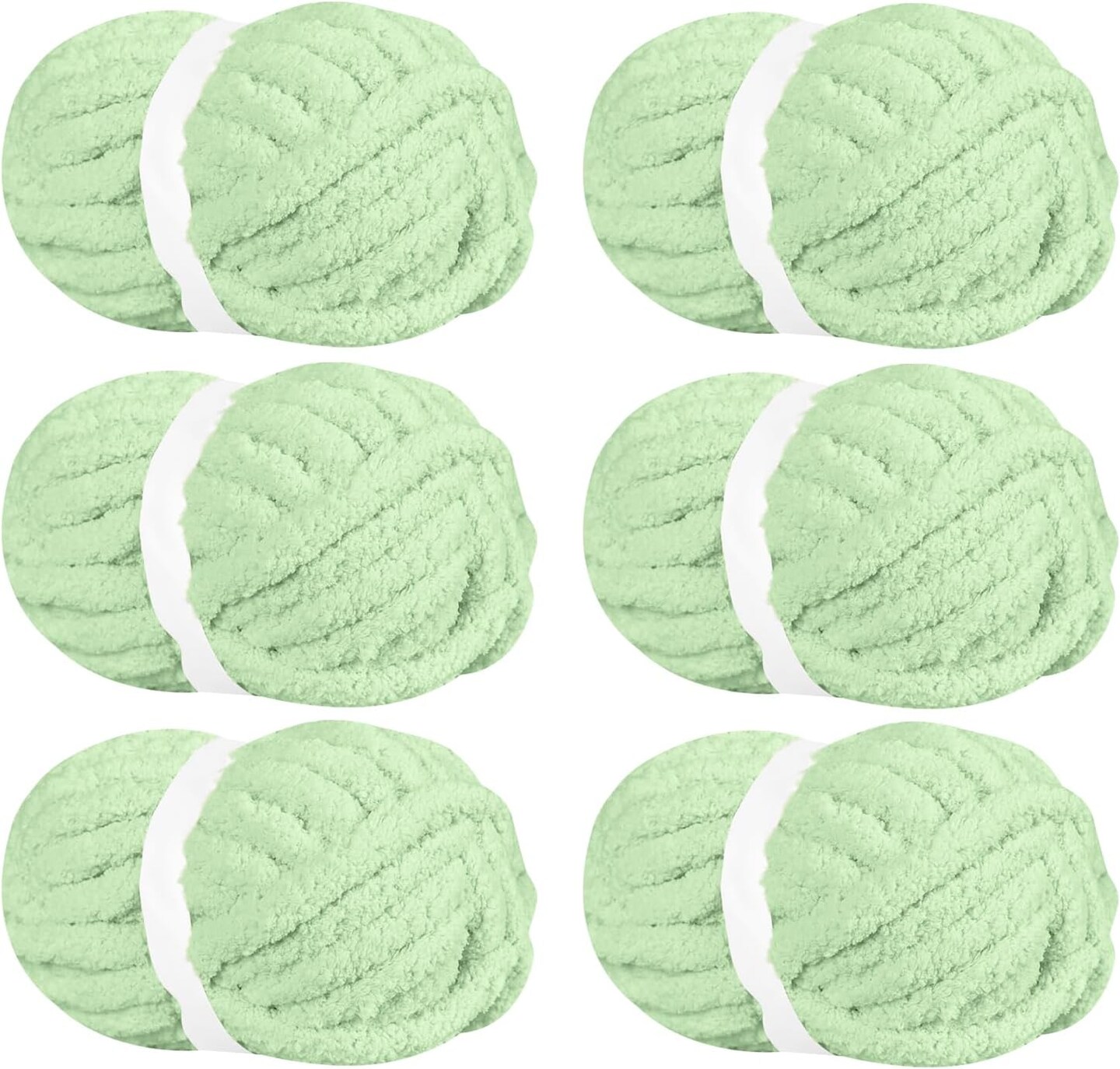 Chunky Chenille Yarn – Fluffy Super Bulky Jumbo Yarn for Hand Knitting & Crochet, Arm Knitting, Chunky Blankets, Cushions & Hats – 6 Pack, Sage Green