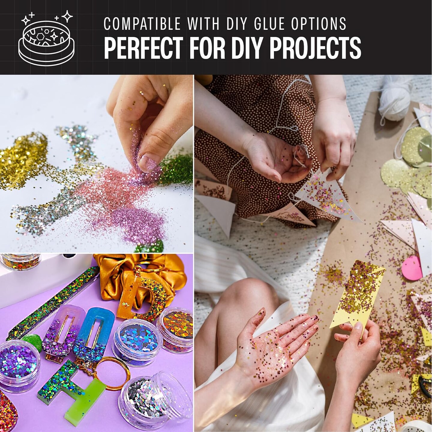 Chunky Holographic Body Glitter I 16 Colors + Glitter Glue