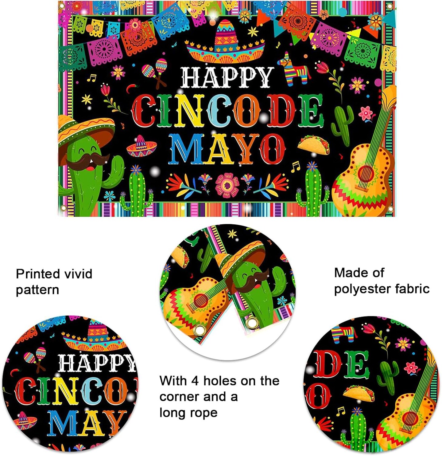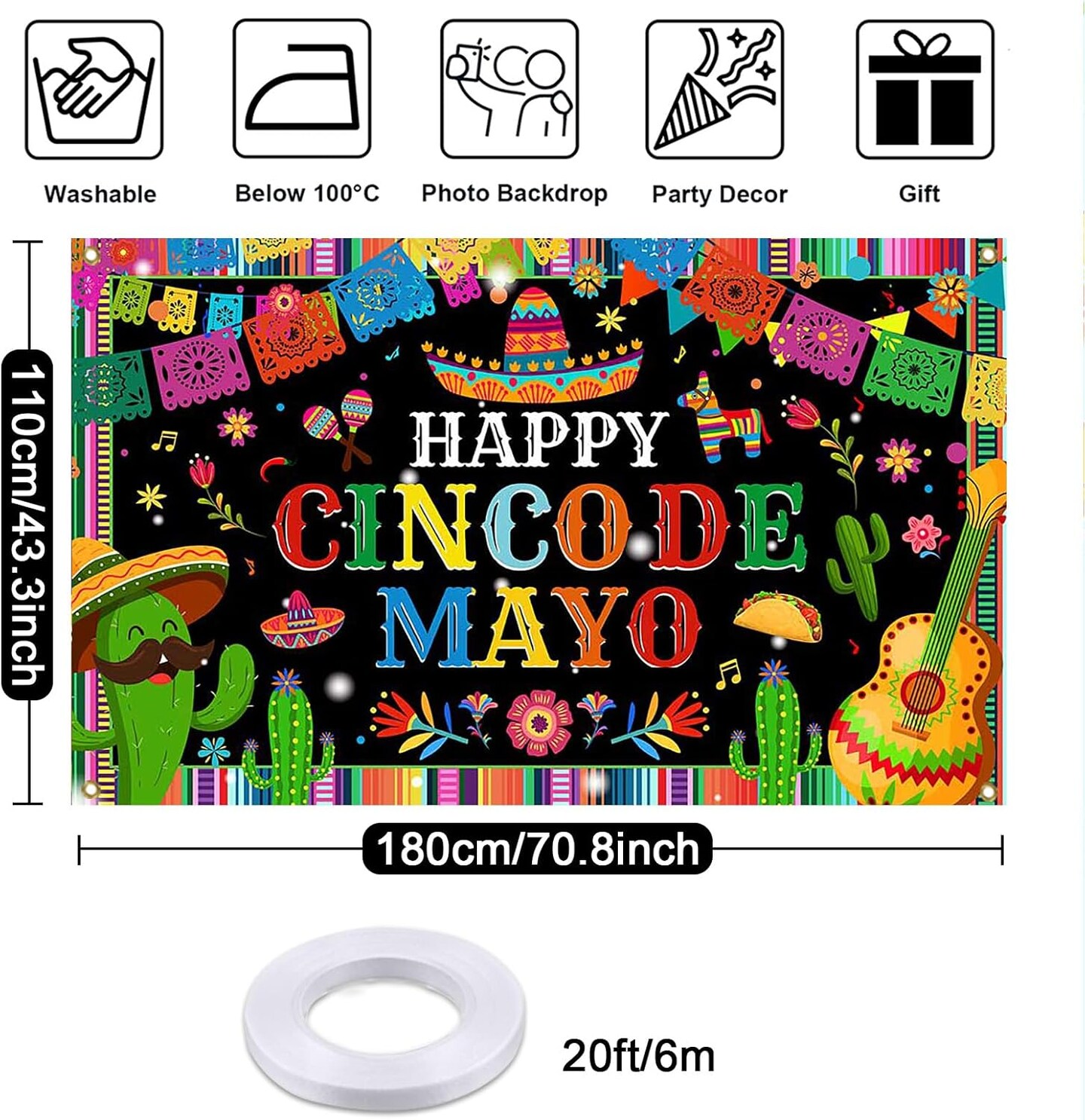 Cinco de Mayo Banner Backdrop – 6x3.6 Ft Mexican Fiesta Party Background – Taco, Cactus & “Happy Cinco de Mayo” Photo Booth Decoration for Carnival, Birthday & Fiesta Events – Perfect for Mother's Day Card Making Displays