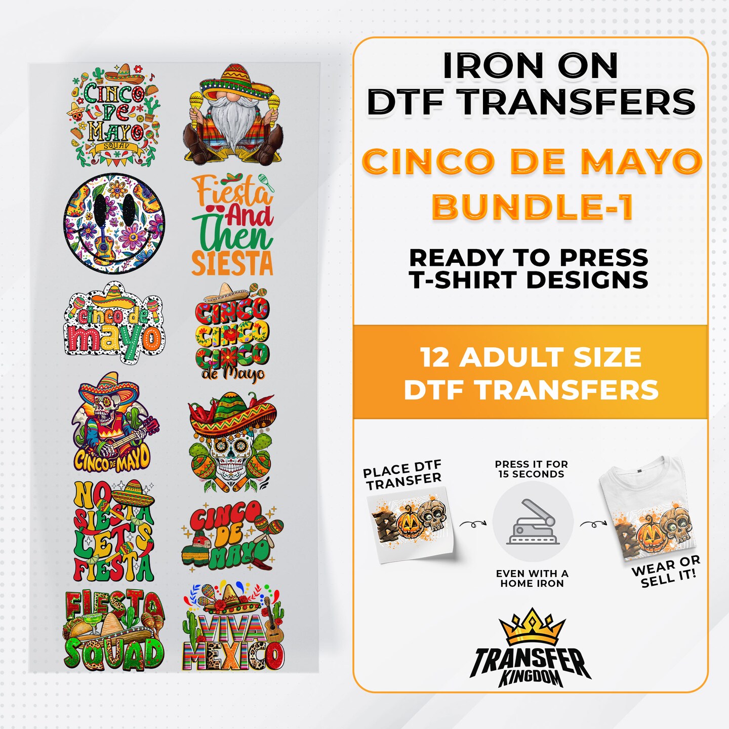 Cinco De Mayo Bundle Iron on DTF Transfer Bundle 1 - 12 Best Seller Ready To Press T-shirt Designs