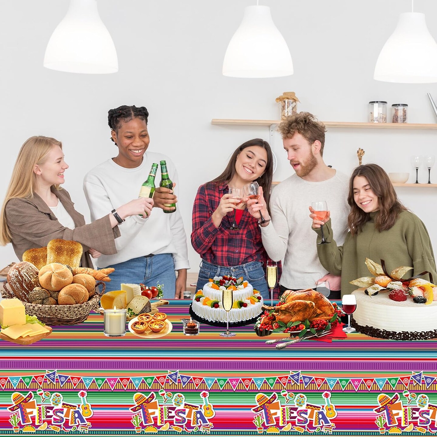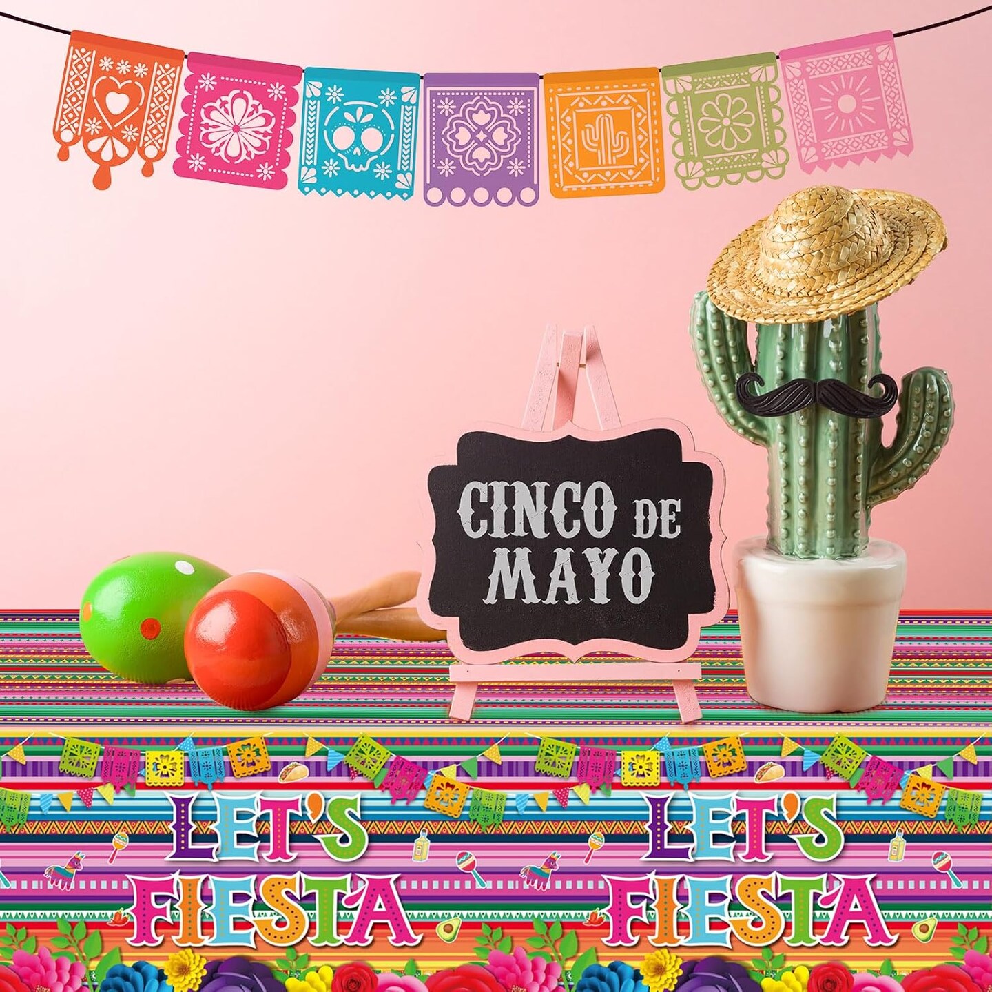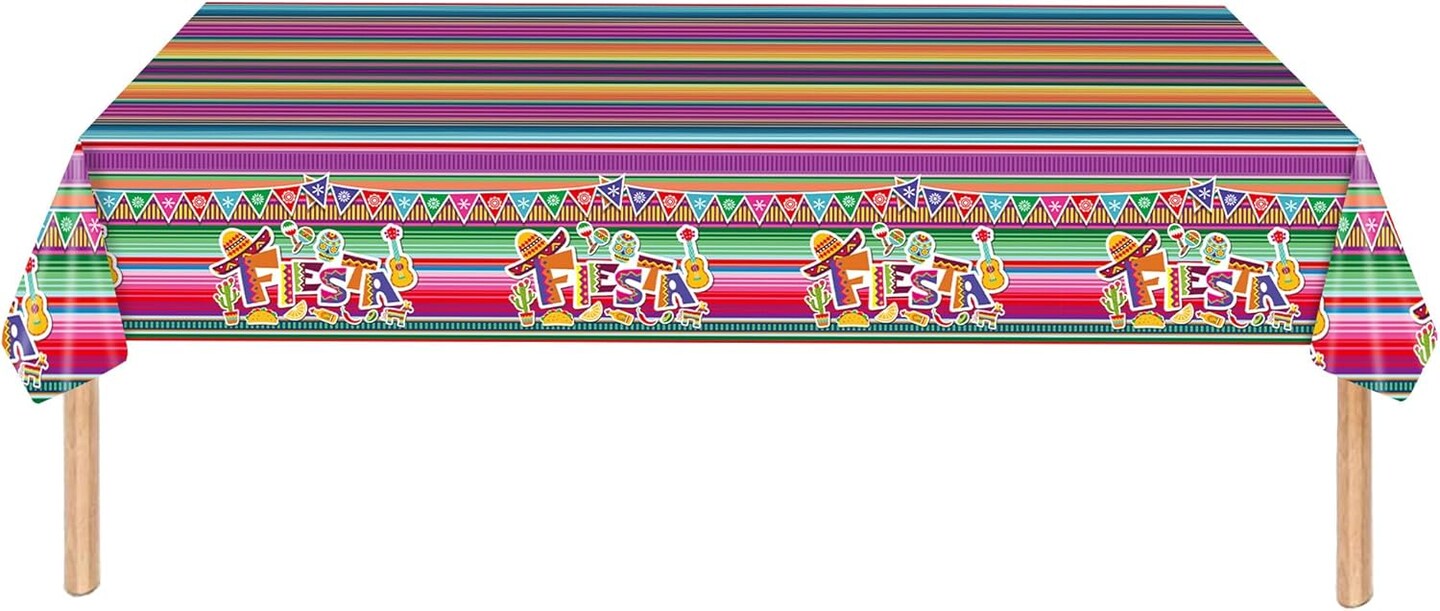 Cinco de Mayo Fiesta Tablecloth – Colorful Striped Disposable Mexican Party Table Cover