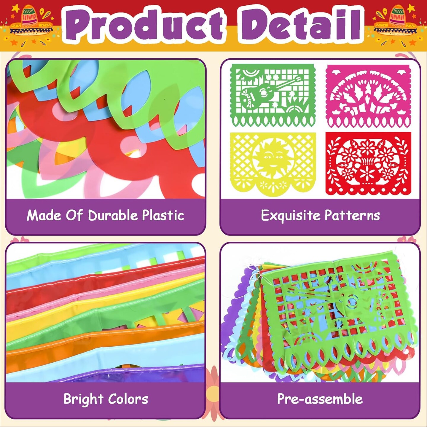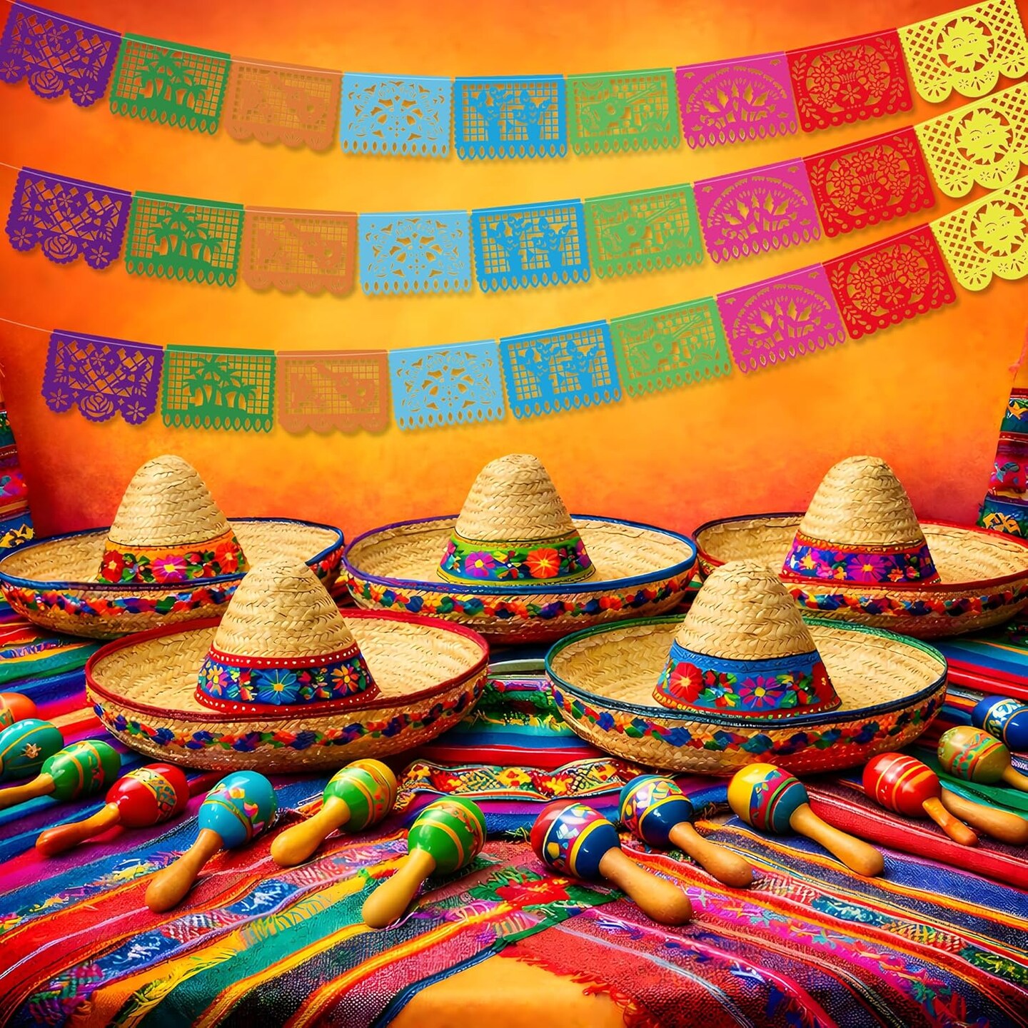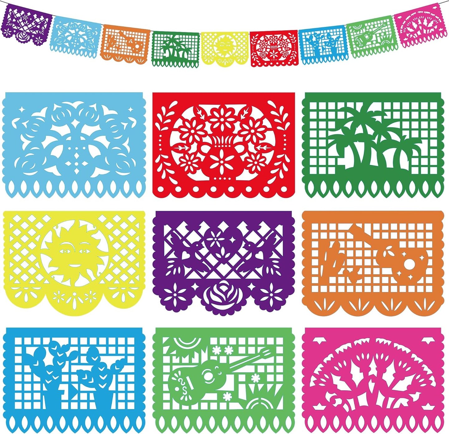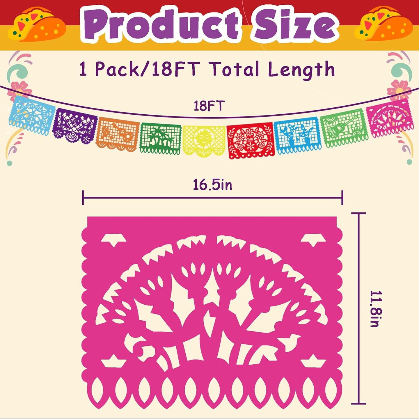 Cinco De Mayo Papel Picado Banner – 18FT Mexican Fiesta Hanging Streamer Flag with Colorful Cutout Designs for Party Backdrop & Decorations