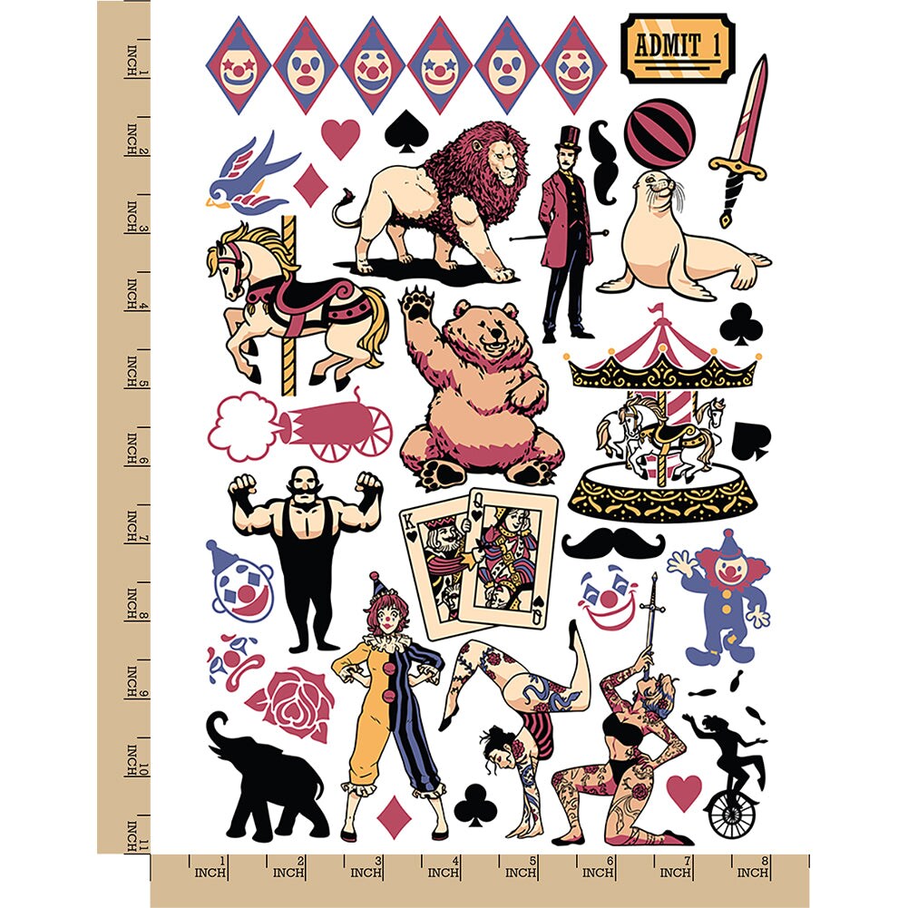Circus Carnival Clowns Temporary Tattoo Water Resistant Fake Body Art Set Collection